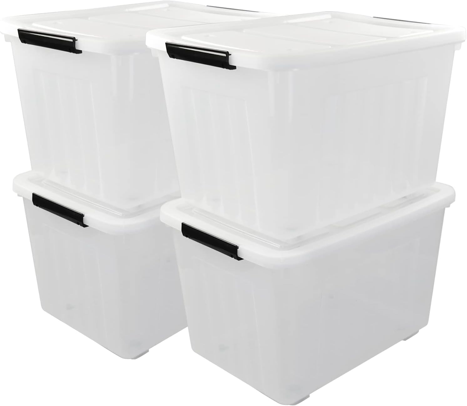 4-Pack 70 L Large Clear Storage Boxes, Plastic Latching Boxes with Wheeles