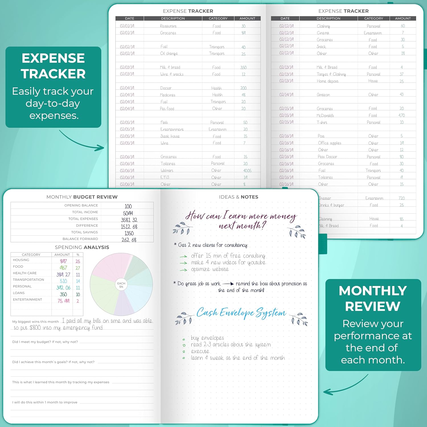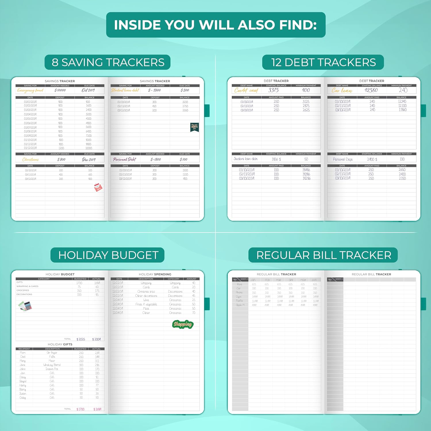 - EASILY CONTROL YOUR SPENDING, DEBTS & SAVINGS - This money planner is undated and covers 12 months. Every month features a calendar, a budget plan, and an expense tracker. The budgeting planner also includes 8 savings and 12 debt trackers.