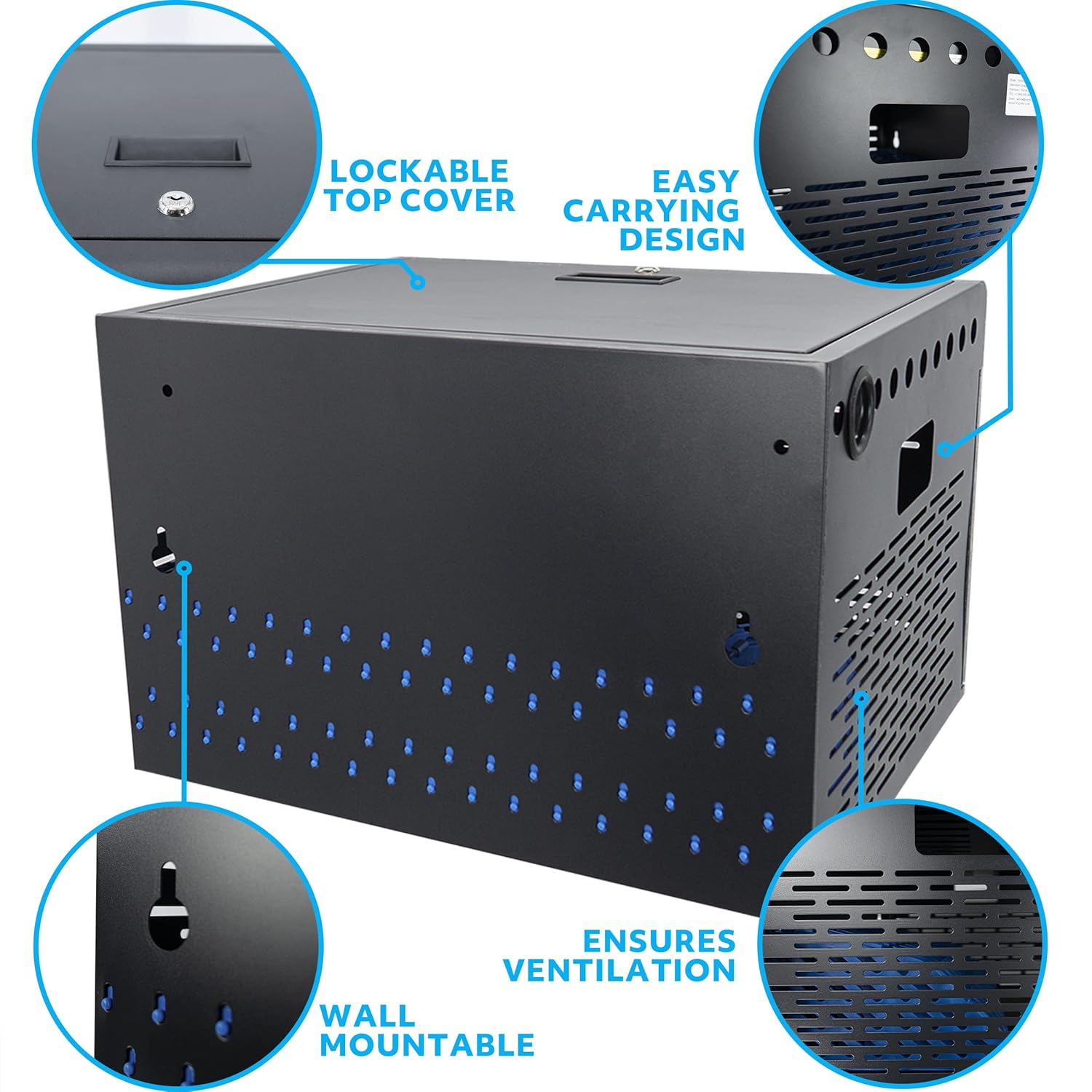 - PORTABLE & WALL MOUNTABLE TABLET STORAGE CABINET: Meaturing 21" x 17" x 13.75" and weighing at 28lbs, this computer charging cabinet features convenient carry handles on the sides, allowing you to move it from classroom to office easily. Our chromebook charging station can either be set flat on the tabletop or mounted on the wall by the built-in pre-drilling holes and included hardware.