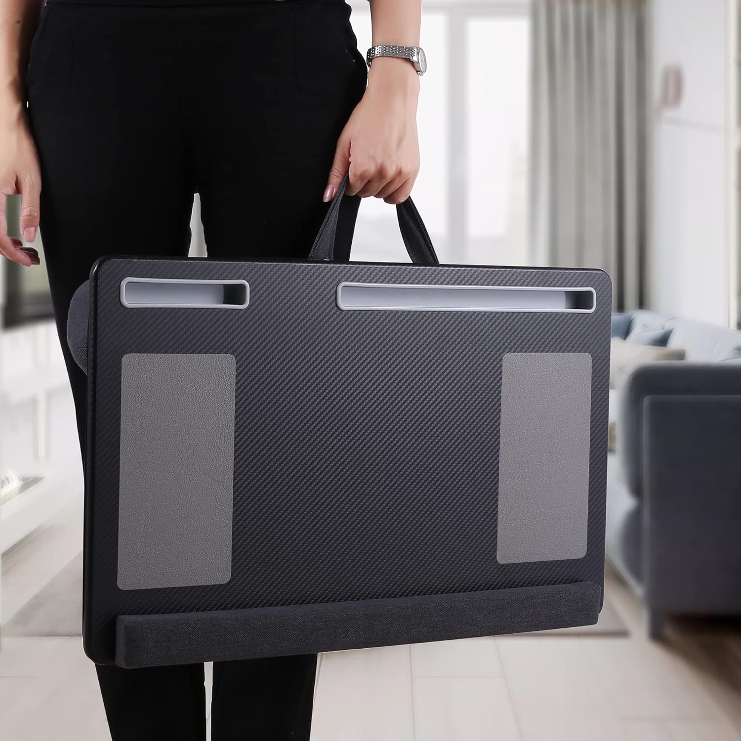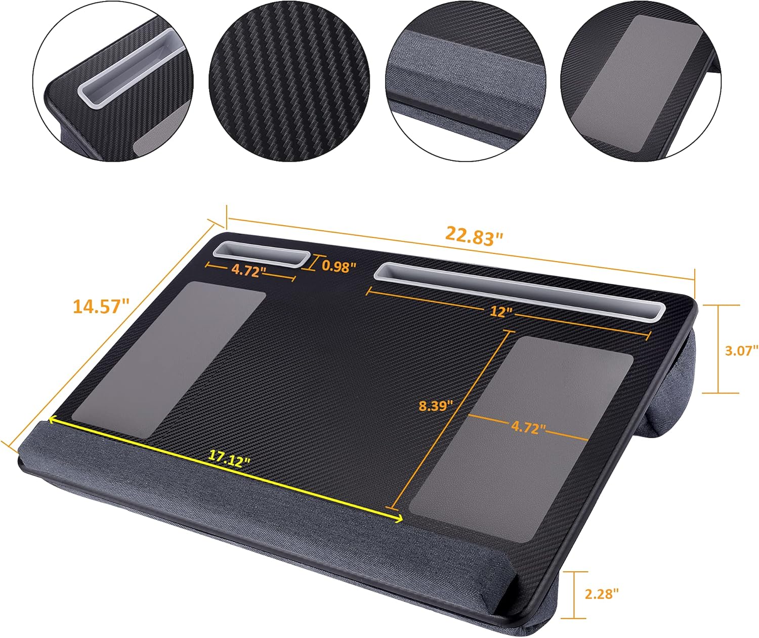Extra Large Lap Laptop Desk- Home Office Portable LapDesk with Mouse Pad & Wrist Rest for Notebook/MacBook/Tablet, Sofa Bed Working, Writing, Drawing (Carbon Black, Fit Up to 17-inch Laptops)
