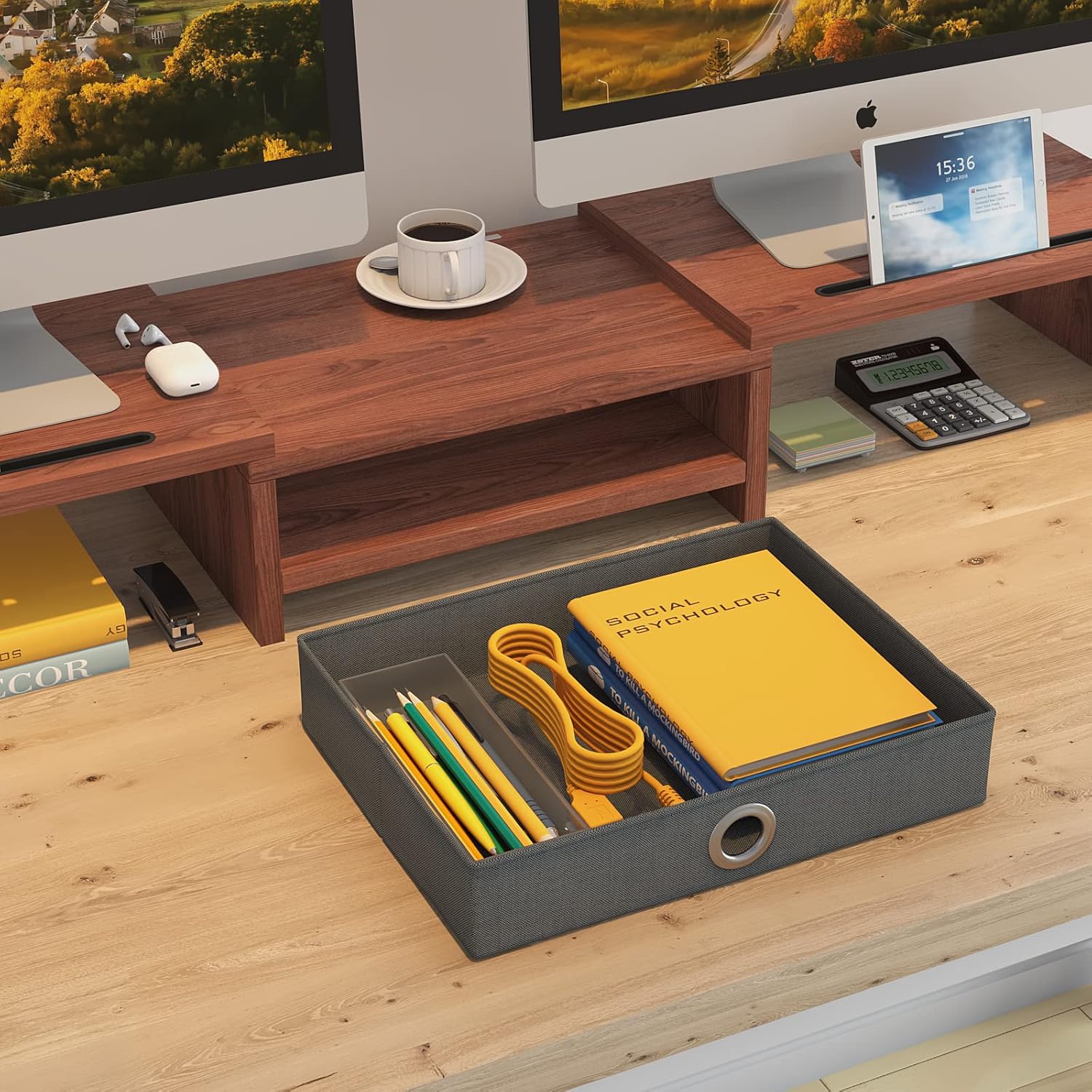 - 【Perfect Storage with Drawer 】Our computer monitor riser includes 13 inches practicality slide-out drawers, for storing items like post-it notes, writing utensils and mobile devices.