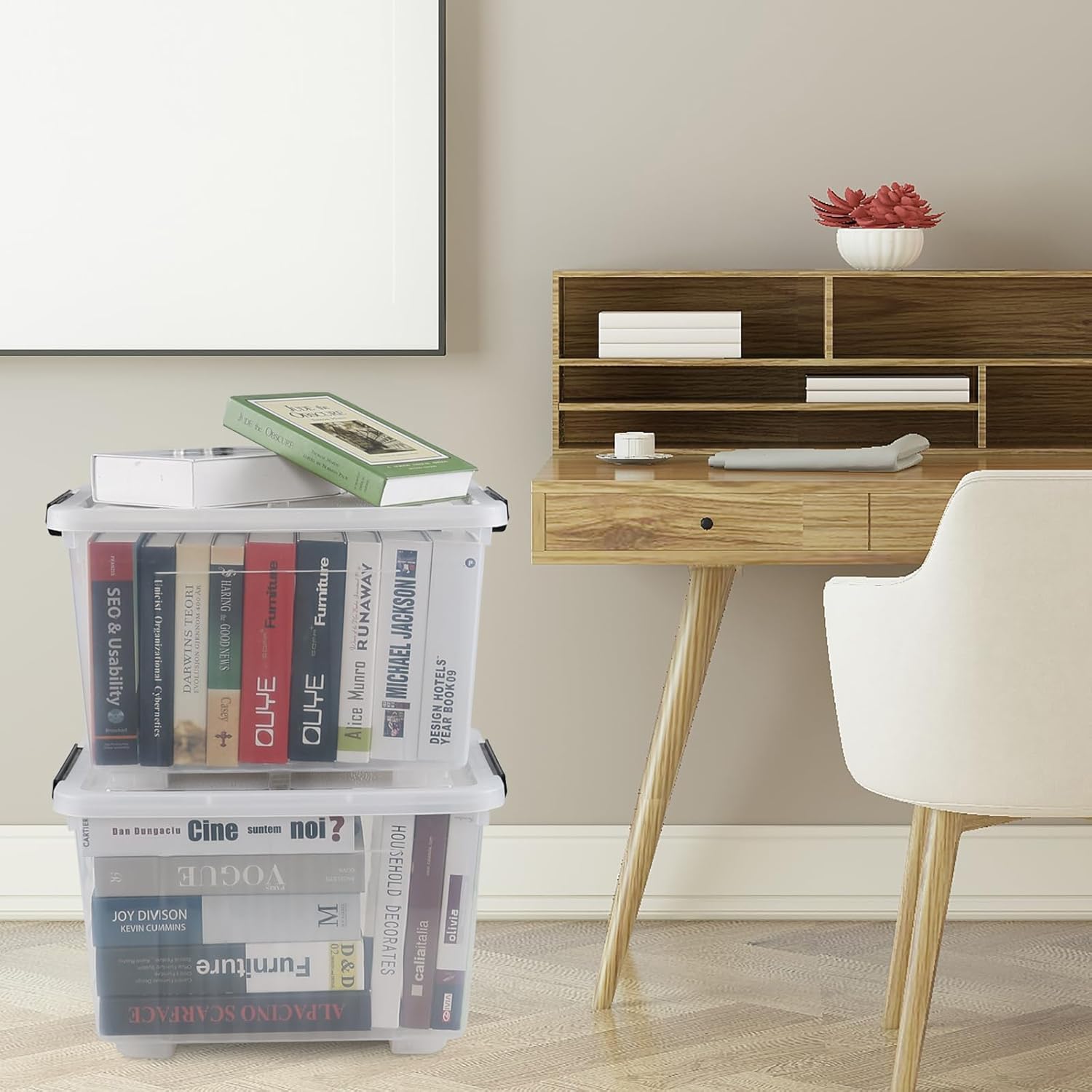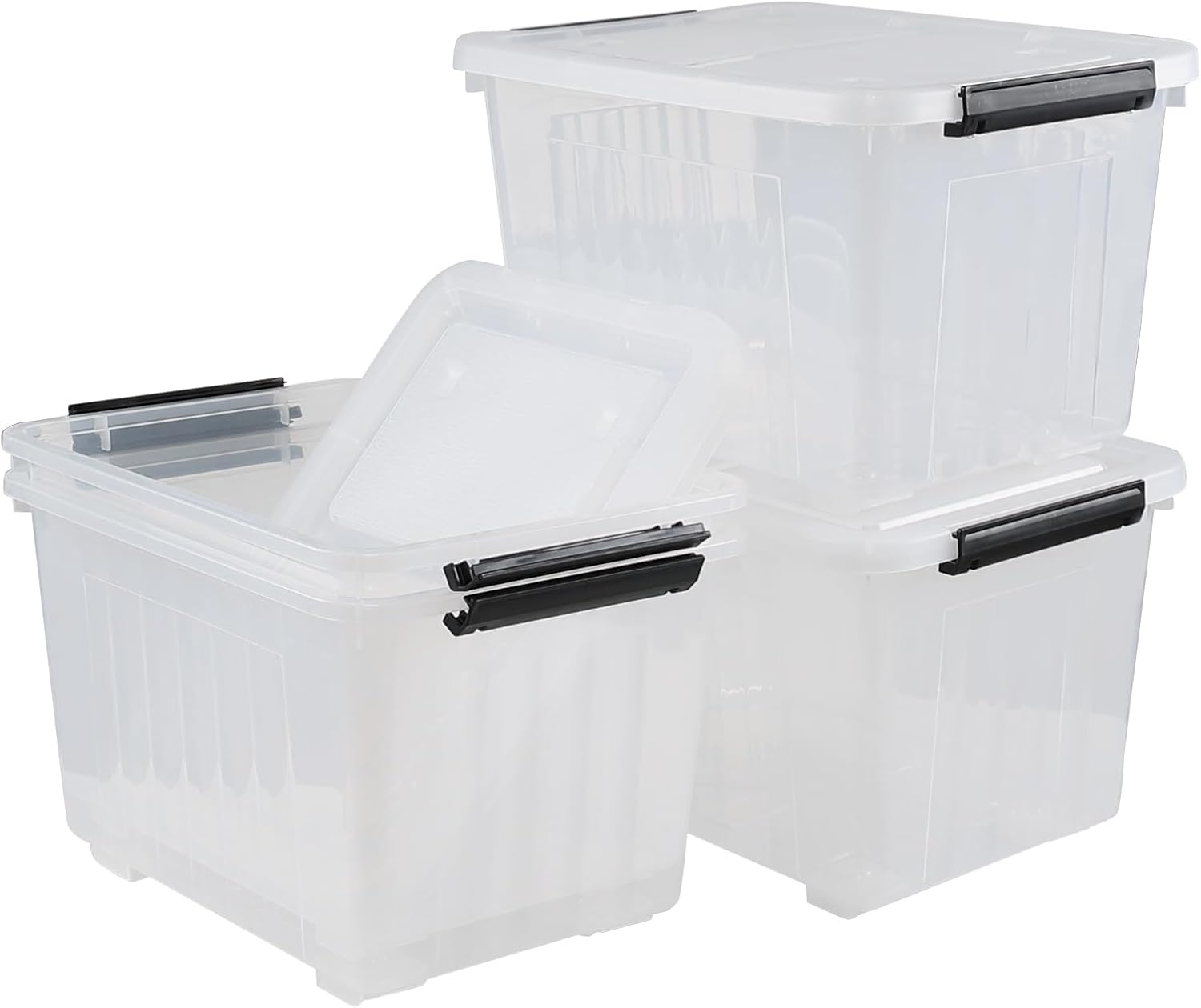 Wekioger Set of 4 Plastic Storage Box on Wheels, 32 Quart Latch Storage Container Bin, Clear