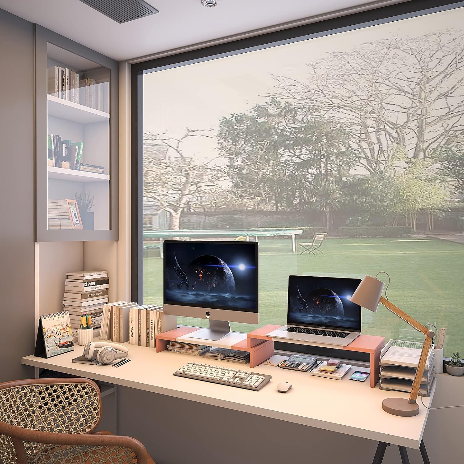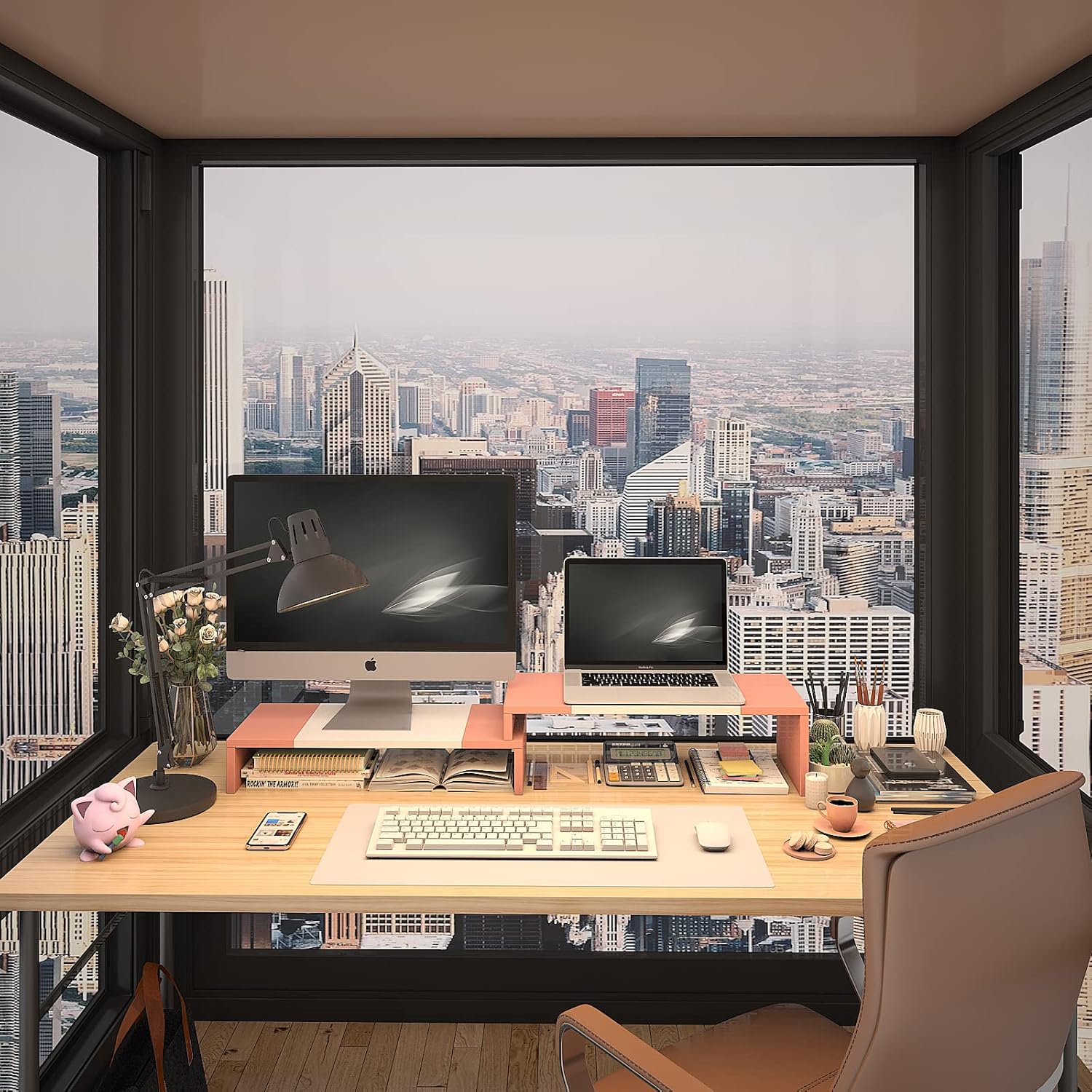 - Monitor Riser:It raises the monitor up to a comfortable eye level and angle, bringing you to a more suitable visual height and a more comfortable position experience, reducing the pain of your neck and back.