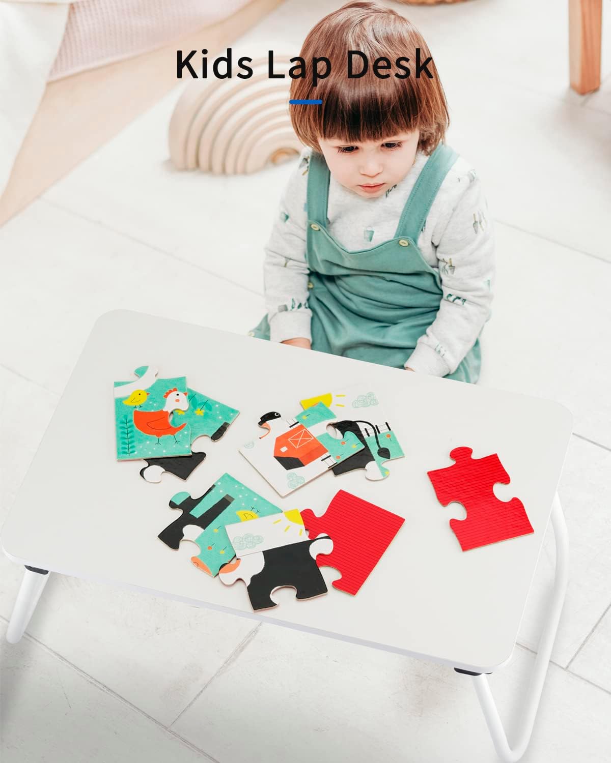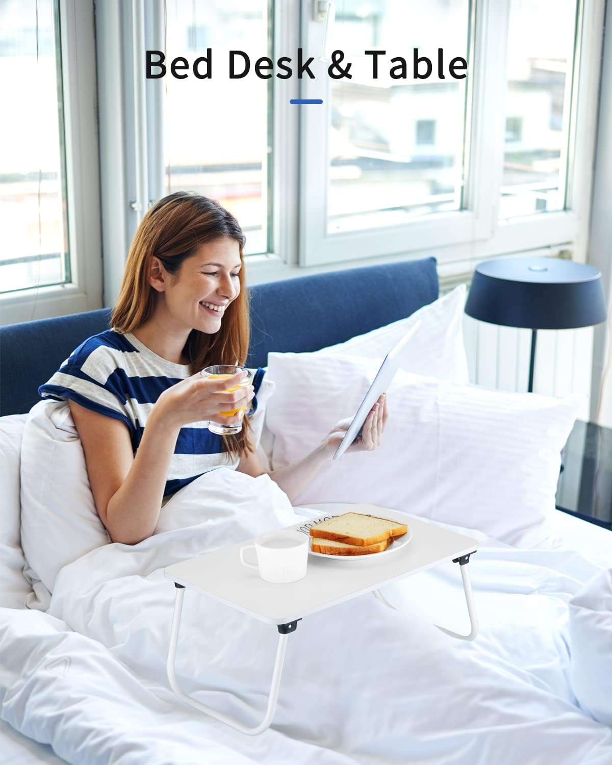 Folding Lap Desk, Ruxury Laptop Stand Bed Desk Table Tray, Breakfast Serving Tray, Portable & Lightweight Mini Table for Sofa Couch Floor - White