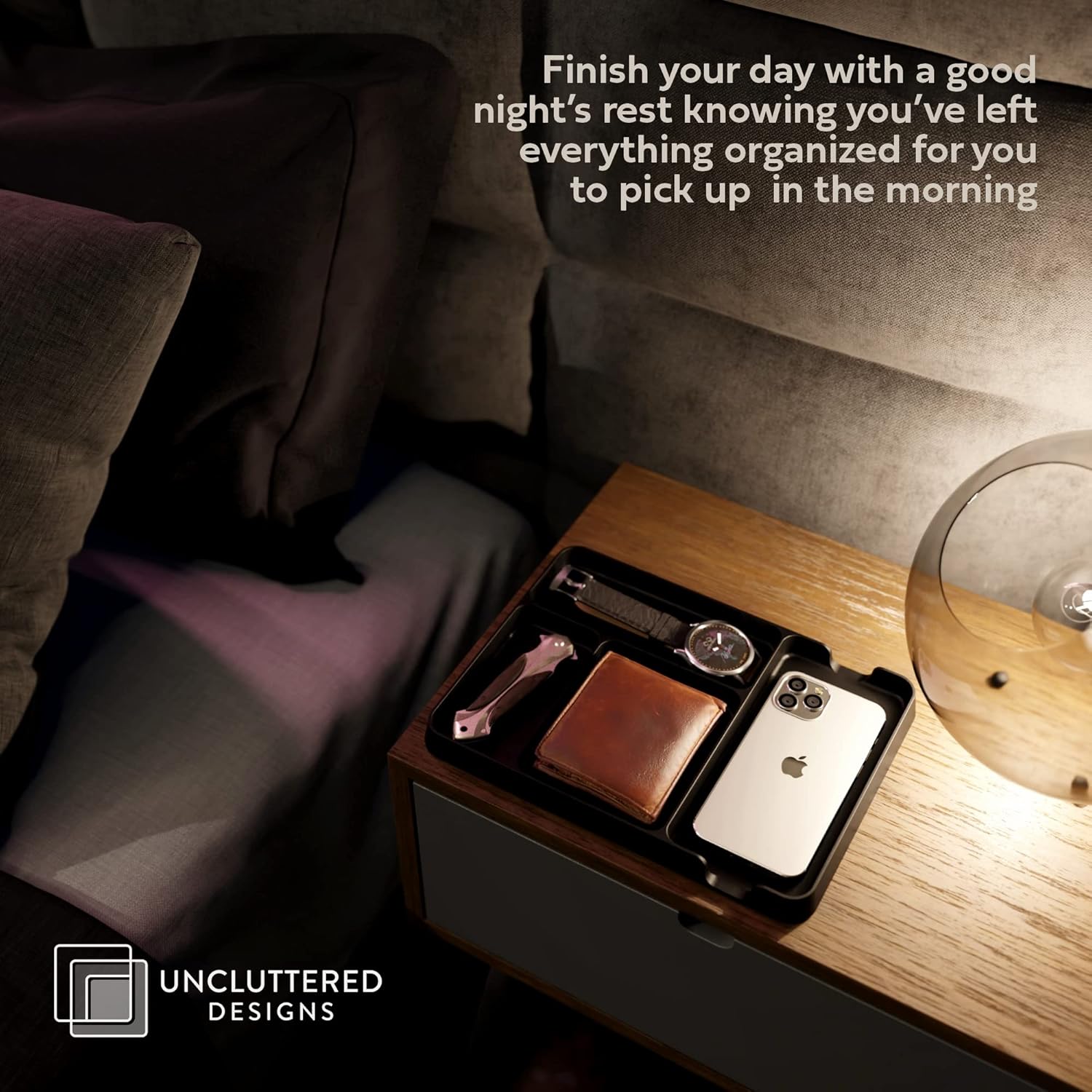 - ORGANISED BEDSIDE TABLE/ NIGHTSTAND - Effortlessly simplify your life. Our nightstand organizers ensure that everything has its place. No more frantic searches for keys or wallets, keep your daily essentials decluttered.