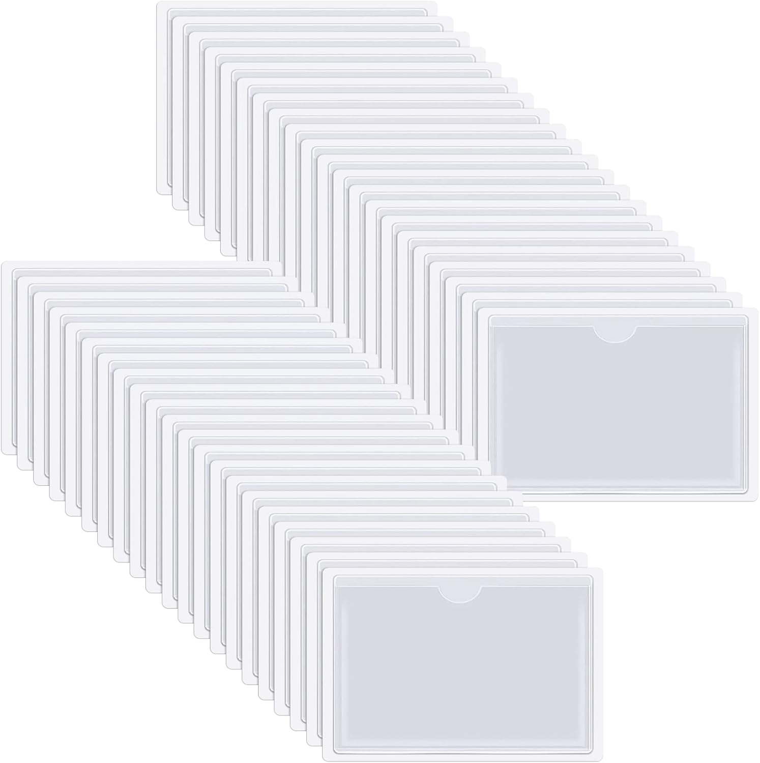 Fainne 240 Pcs Self Adhesive Index Card Pockets with Top Open Clear Plastic Label Holder Bulk for Storage Bins Adhesive Square Index Card Sleeve for Library Office Organizing, 5.12 x 3.74 Inch