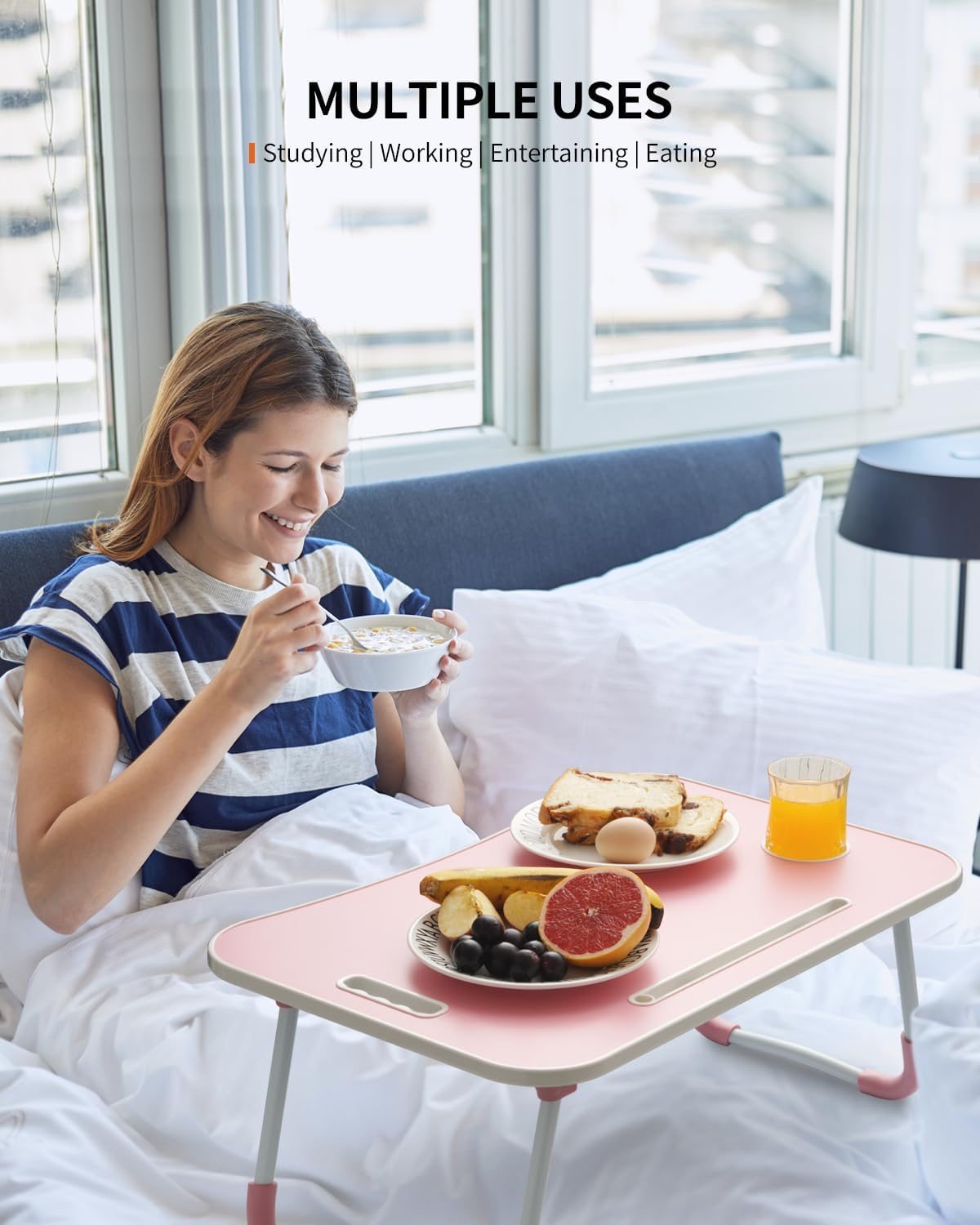 - Multi-Functional: This laptop table is designed for versatility. Use it on the bed, the ground, the carpet, the sofa, the desk and even on the grass. Enjoy the freedom to work, write, or have breakfast in the most comfortable position on your bed, couch, or floor.