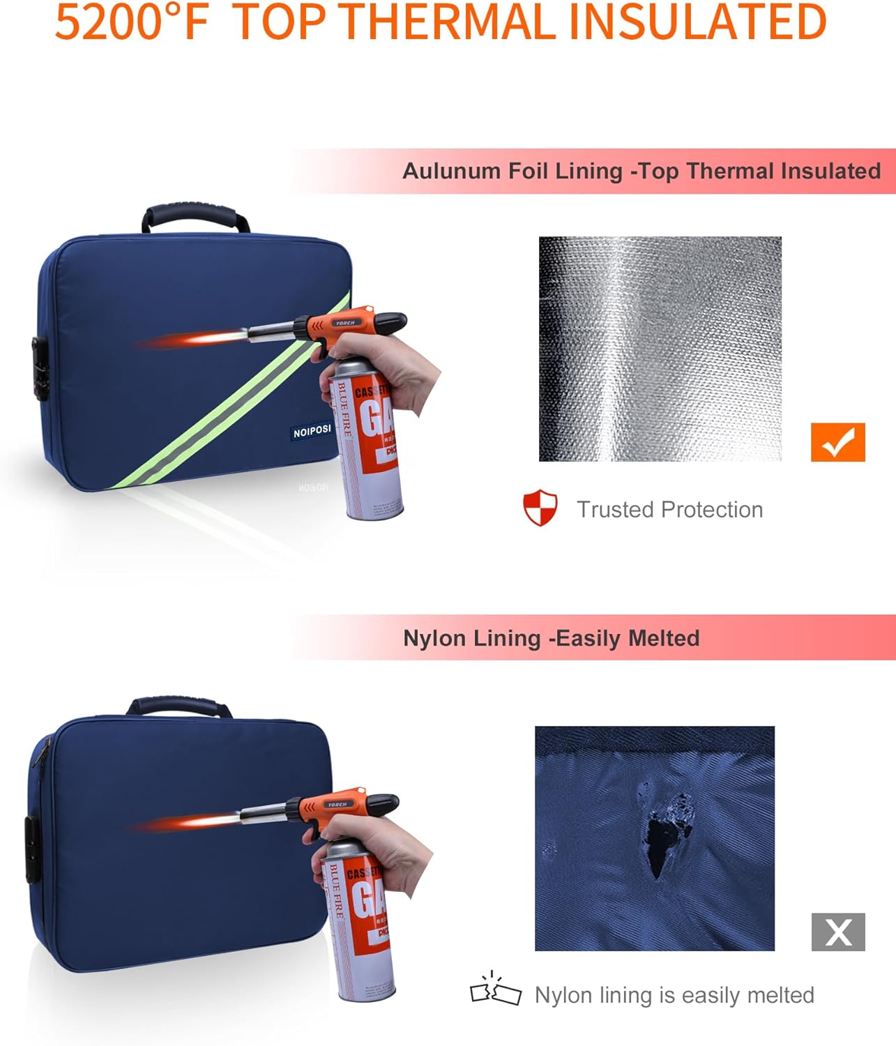 - Aluminum Foil Lining for Better Fireproof Protection: important document holder is made of silicone coated material and aluminum foil which withstand the temperature up to 5200℉ .Aluminum foil lining isn’t easily melt under high temperature after several tests .Fireproof document organizer offers your valuables the double safe protection.Unique reflective strip design, even at night, you can find your fire document storage immediately. The reflective strip point is your right direction