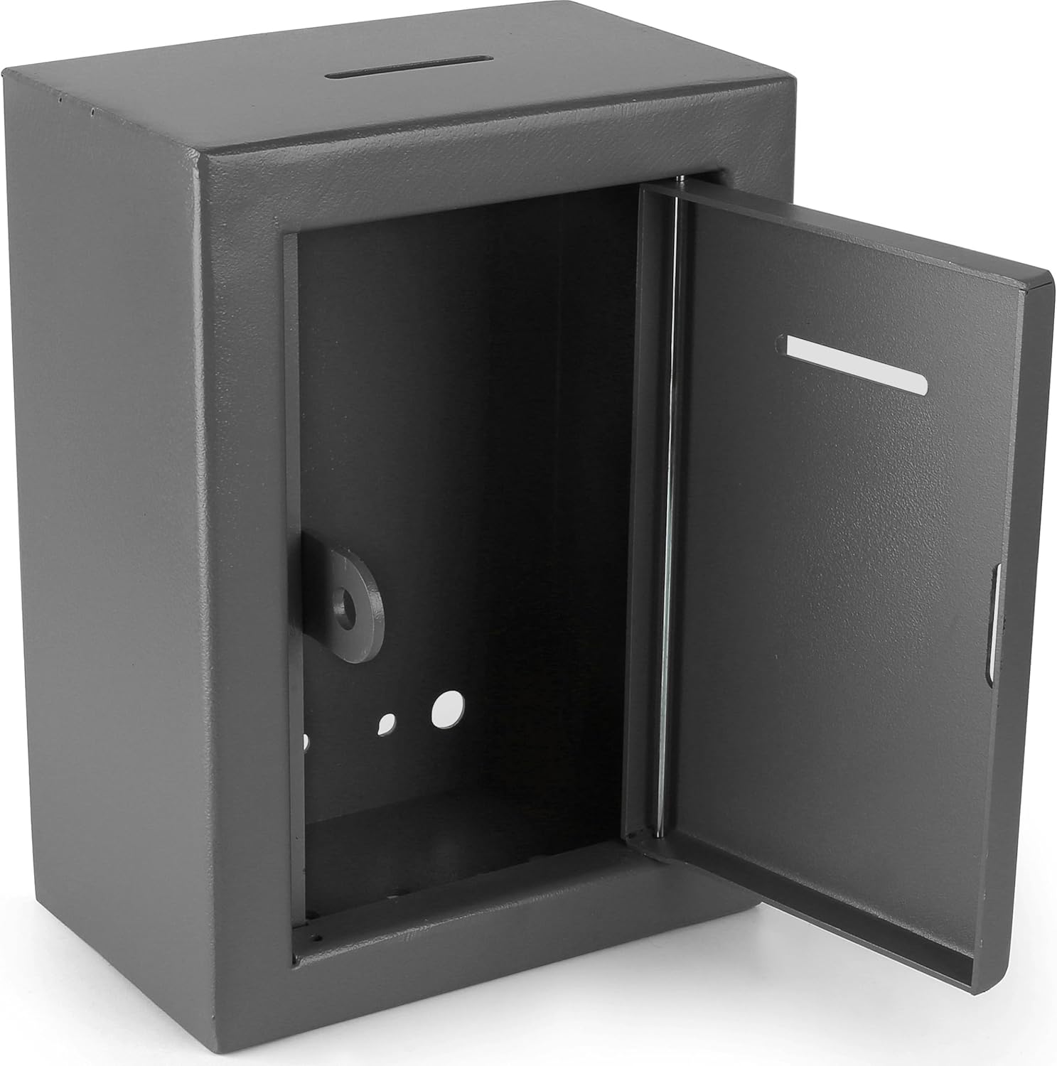 Metal Charity Donation Box - Secure Steel Collection Box with Front Slot, Easy Wall Mount, 8.5x6.5x4" Gray