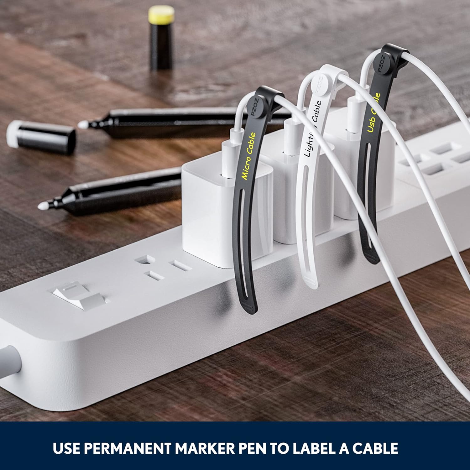 PZOZ (10 pcs) Reusable Cable Ties, Elastic Silicone Cord Organizer Straps Keeper Management Holder for iPhone Charging Cable Charger Wire Labels Desk Car and Travel Accessories (Black)