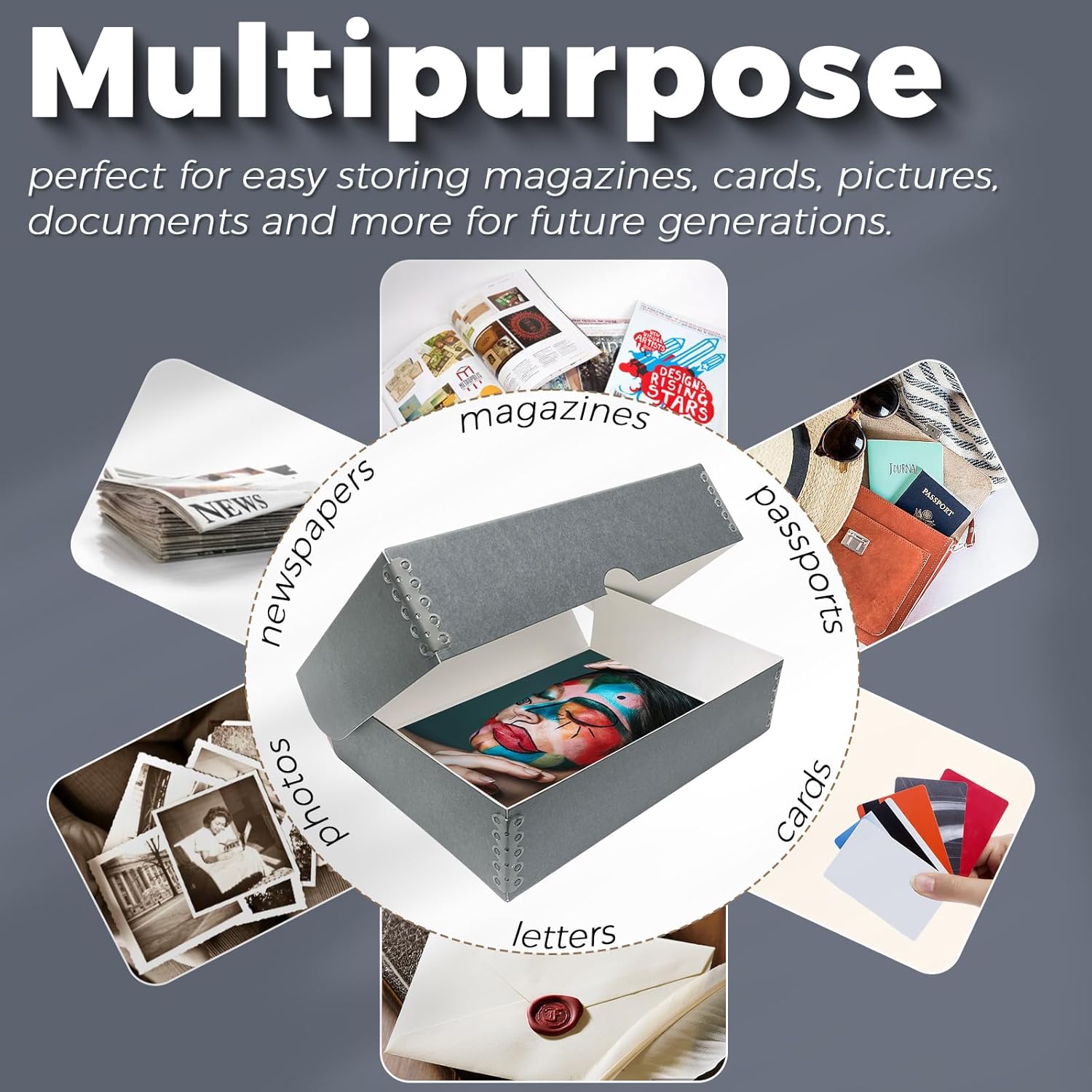- EASY ORGANIZATION - Made with metal edge corner design, the size of acid-free box is suitable for easy stacking and storing. It is easy to store on a bookshelf, and the grey design is beautiful enough to display in any room