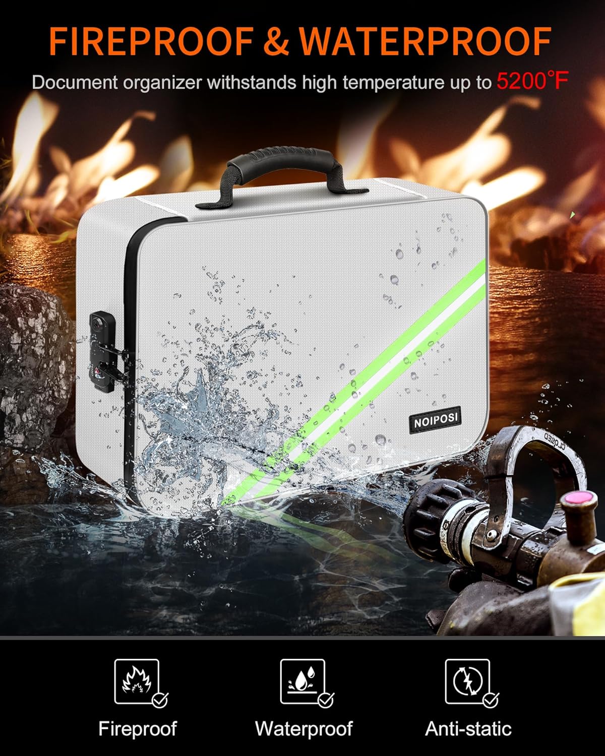 - Aluminum Foil Lining for Better Fireproof Protection: important document holder is made of silicone coated material and aluminum foil which withstand the temperature up to 5200℉ .Aluminum foil lining isn’t easily melt under high temperature after several tests .Fireproof document organizer offers your valuables the double safe protection.Unique reflective strip design, even at night, you can find your fire document storage immediately. The reflective strip point is your right direction