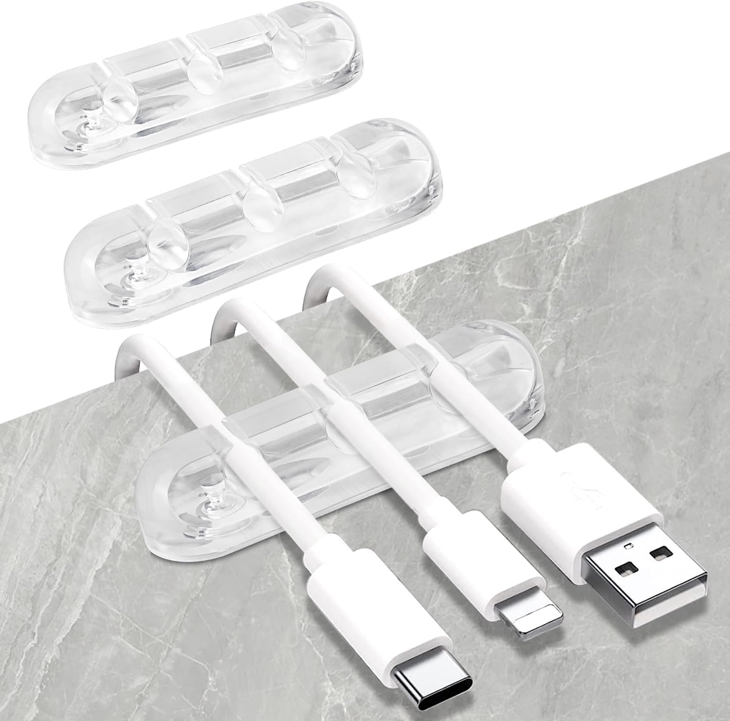 SOULWIT Cable Holder Clips, 3-Pack Cable Management Cord Organizer Clips Silicone Self Adhesive for Desktop USB Charging Cable Nightstand Power Cord Mouse Cable Wire PC Office Home