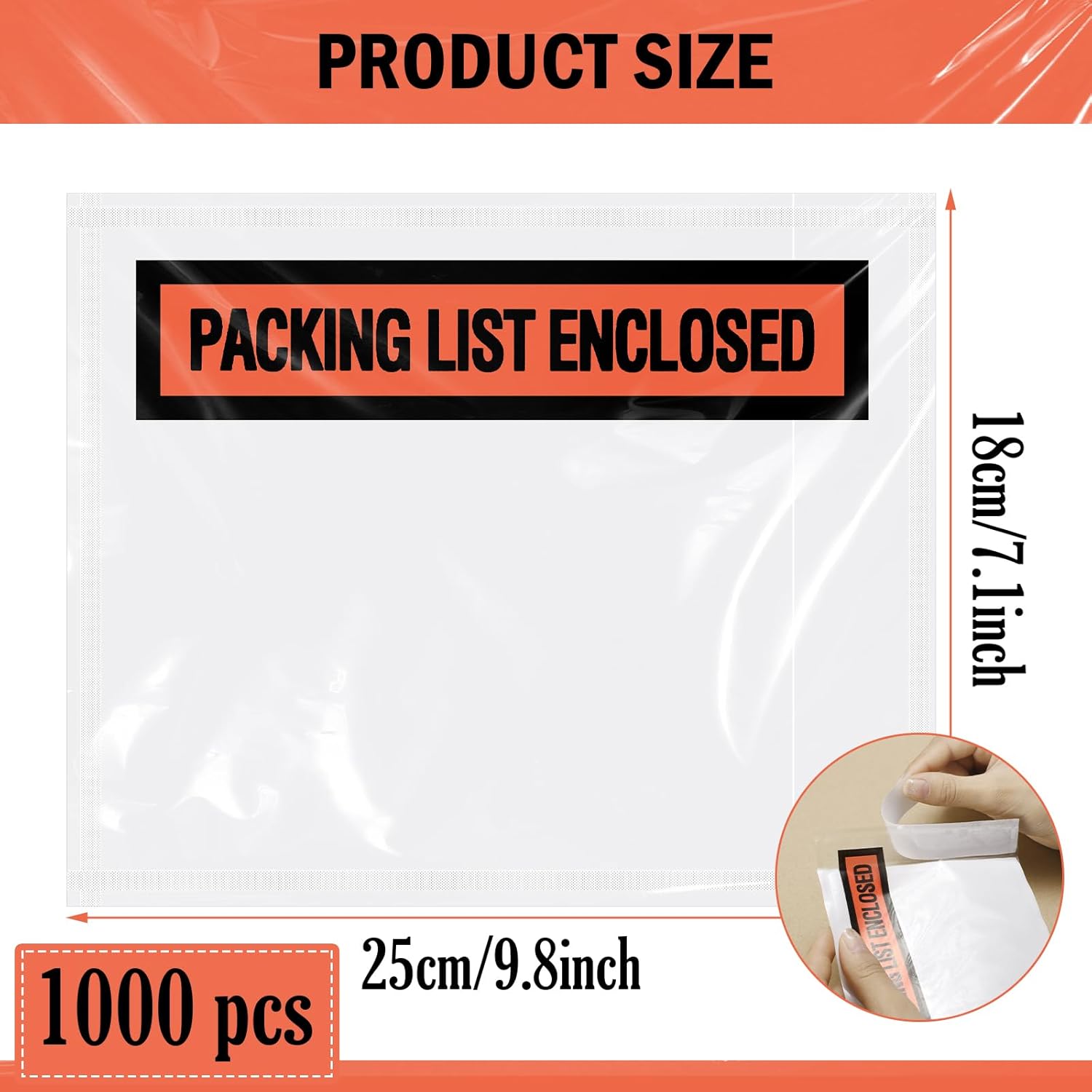 - Clear Look: these shipping label sleeves with adhesive are featured with high transparency and printed in [PACKING LIST ENCLOSED], easy to notice, which allows the delivery team and your clients to easily check and read the enclosed information