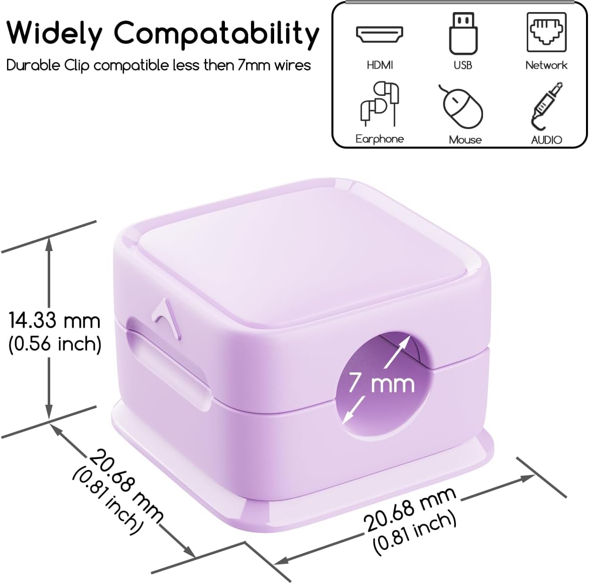 - 【WORK FOR ALL KINDS OF CABLE】 Suitable for holding most desktop cables less than 7 mm (0.27 inches). This desktop cable management can be used for iPhone charger cables, USB cables, network cables, kitchen appliance power cord and so on.