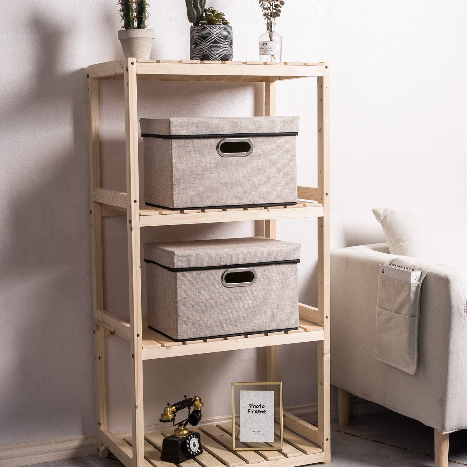 - 【Fashionable Bins】Designed to match interior decor and style in any room in the home or office. Enjoy the relaxing ambiance of the soft light gray and natural black neutral color scheme.