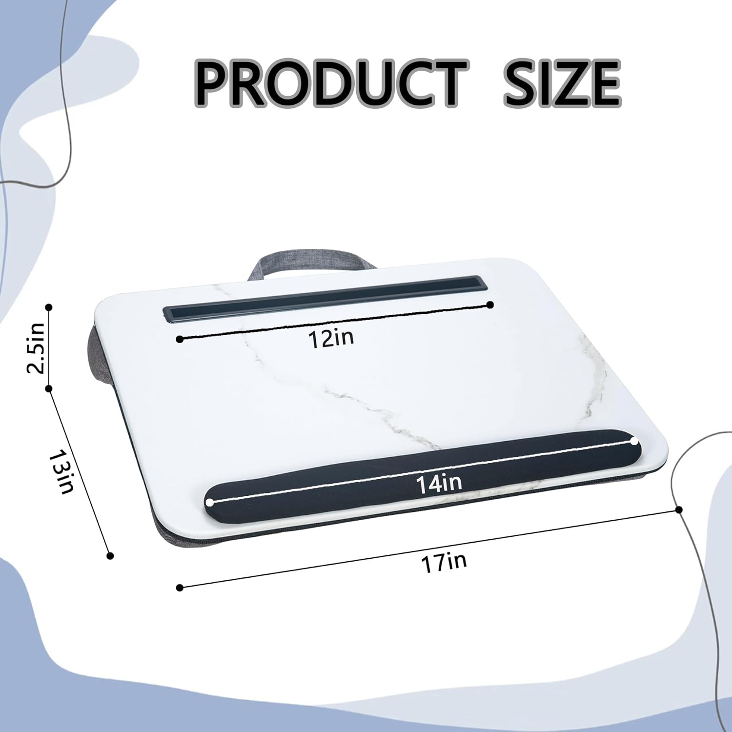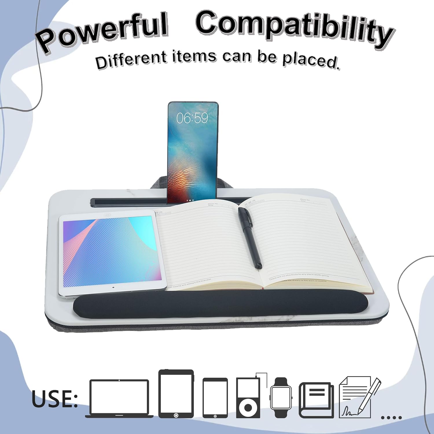 Portable Laptop Desk Fits Up to 16“ Laptops, with Tablet Slot, Built-in Cushion, Great for Home & Office,Lap Desk for Laptop,Lap Desk with Cushion (White Marble with Wrist Rest, Medium)