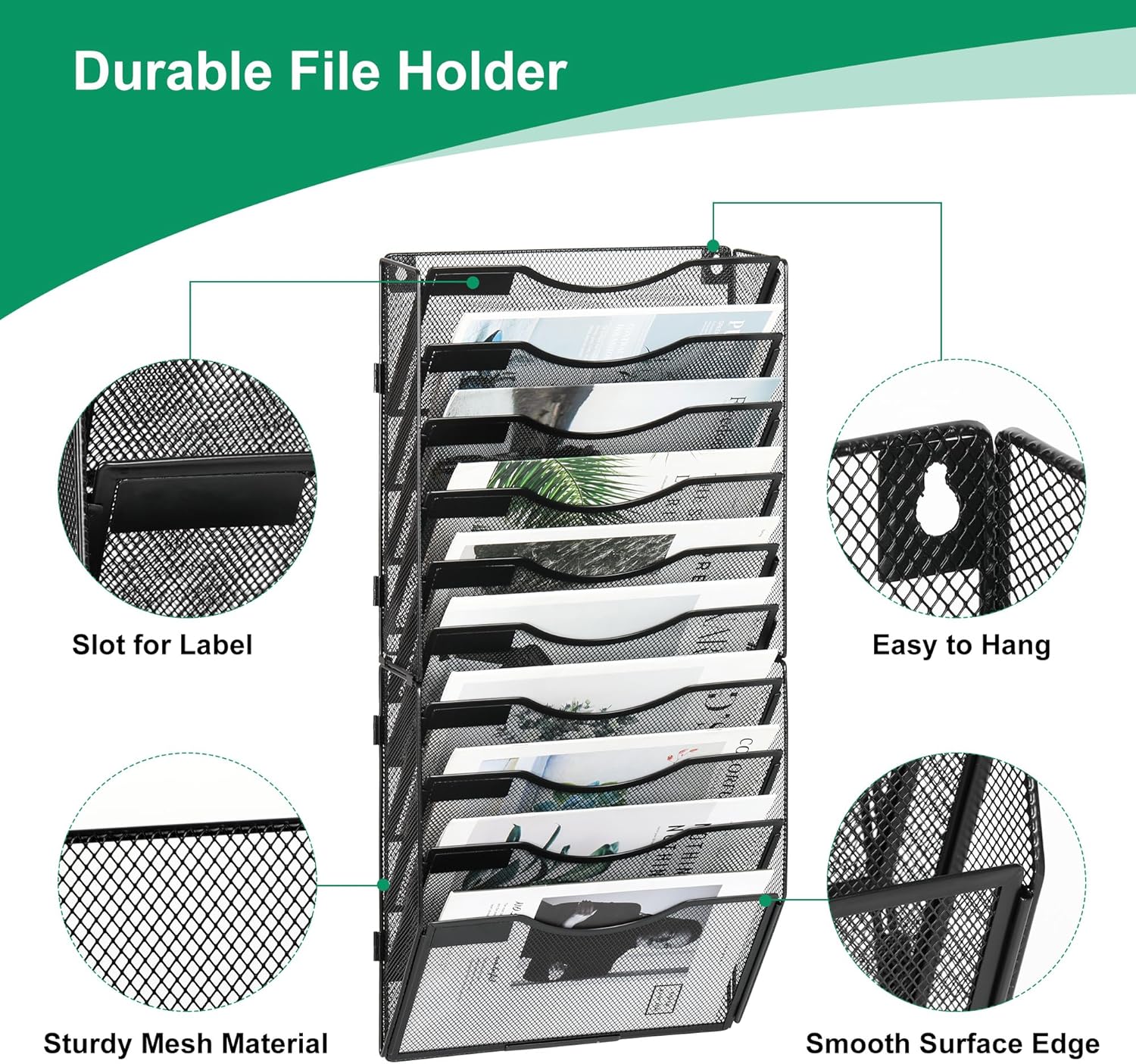 - Sturdy Construction: Made of thick iron mesh, this wall file organizer is more sturdy and less likely to deform than regular styles