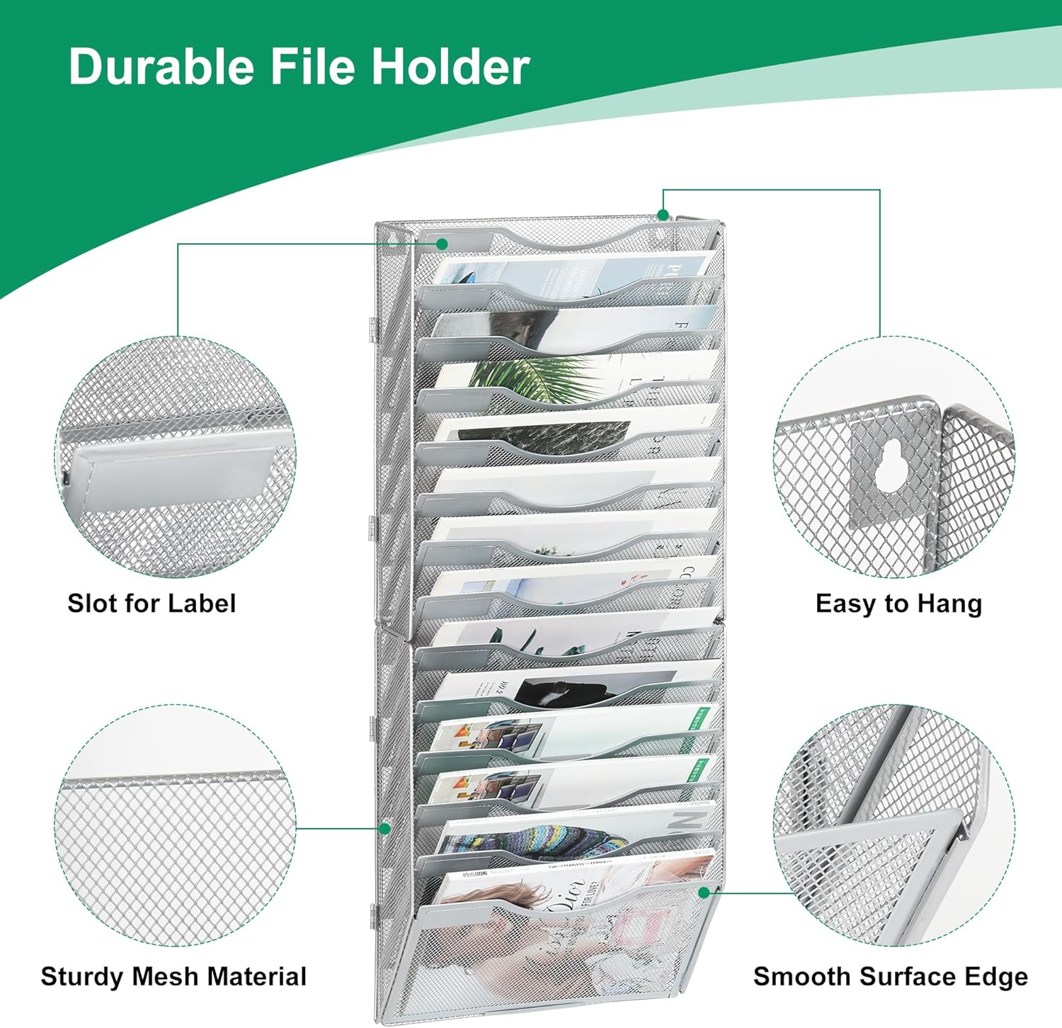 - Sturdy Construction: Made of thick iron mesh, this wall file organizer is more sturdy and less likely to deform than regular styles