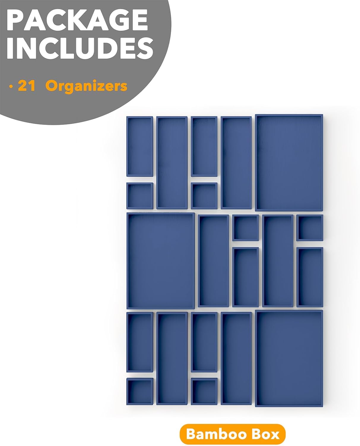 SpaceAid 21-Piece Bamboo Drawer Organizer Storage Boxes Set, Wood Tray Junk Drawer Organizers Multi-Use Divider Bins for Kitchen, Bathroom, Office Desk and Makeup Organization (21 Pack, Navy Blue)