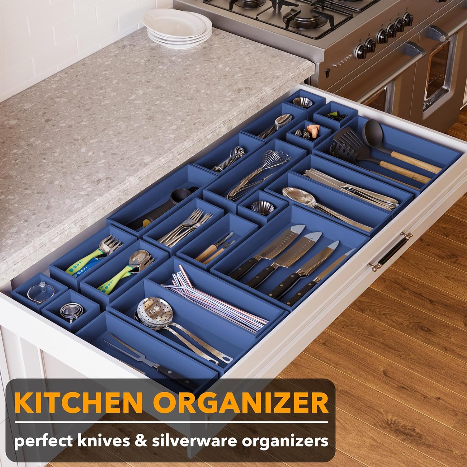 - EASY TO FIND IN DRAWER - Identify drawer contents instantly with this multi-functional kitchen wood drawer organizer set; You can use them as a nightstand or vanity organizer to keep your items tidy