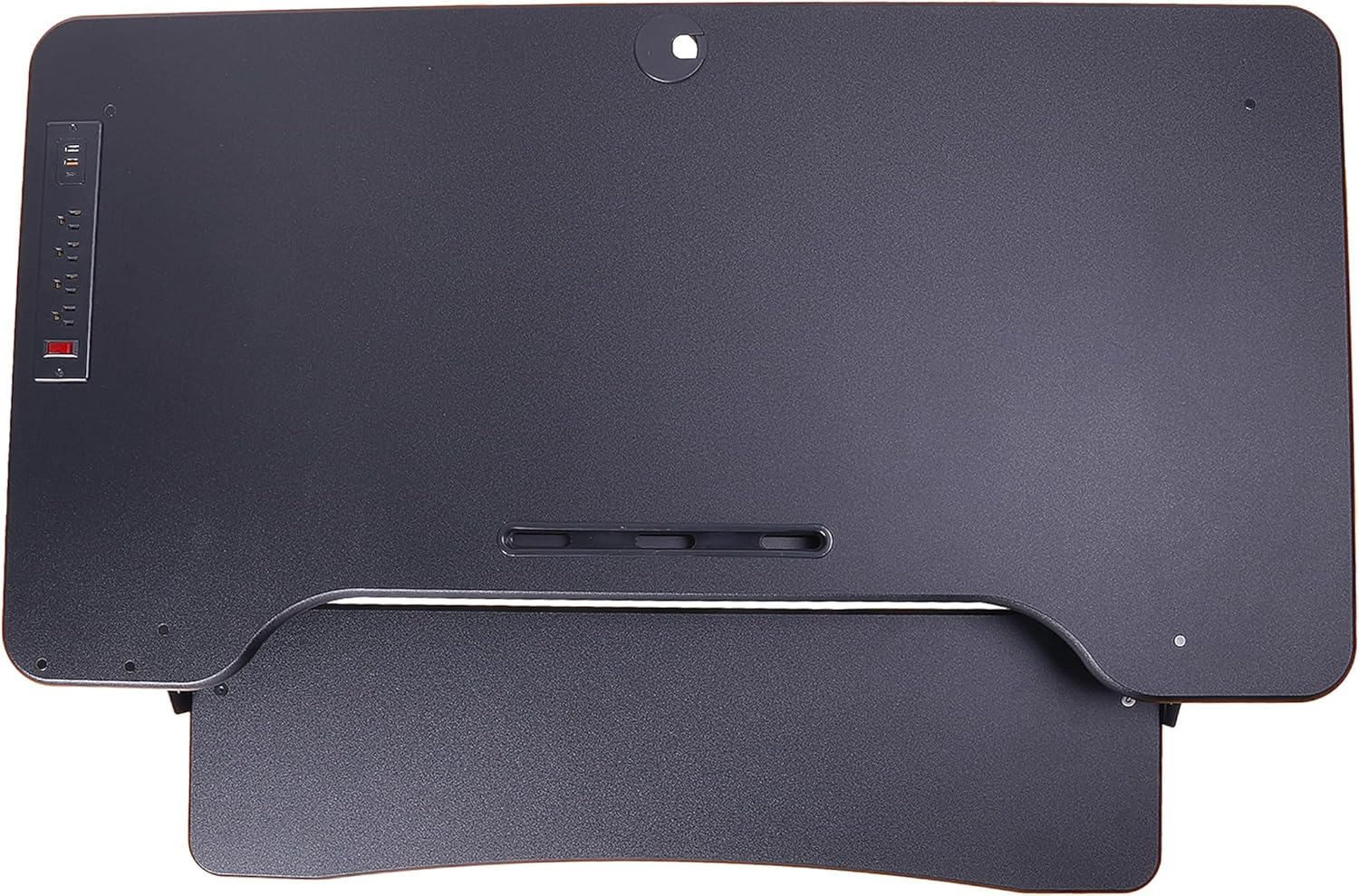 Rocelco 46" Electric Standing Desk Converter with AC Outlet USB Charger - Motorized Height Adjustable Sit Stand Up Triple Monitor Riser - Tabletop Workstation Large Keyboard Tray - Black (R EDRB-46)