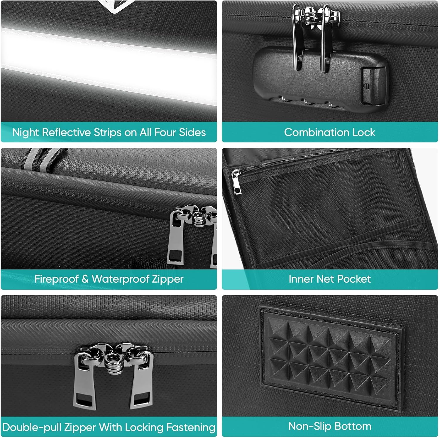 - Unique Design: The large and medium-sized fireproof boxes feature sliding rails for easy document adjustment, PVC anti-slip pads for stability, and reflective strips for visibility in low light; The smaller fireproof bag includes a reinforced handle and adjustable shoulder strap for easy carrying