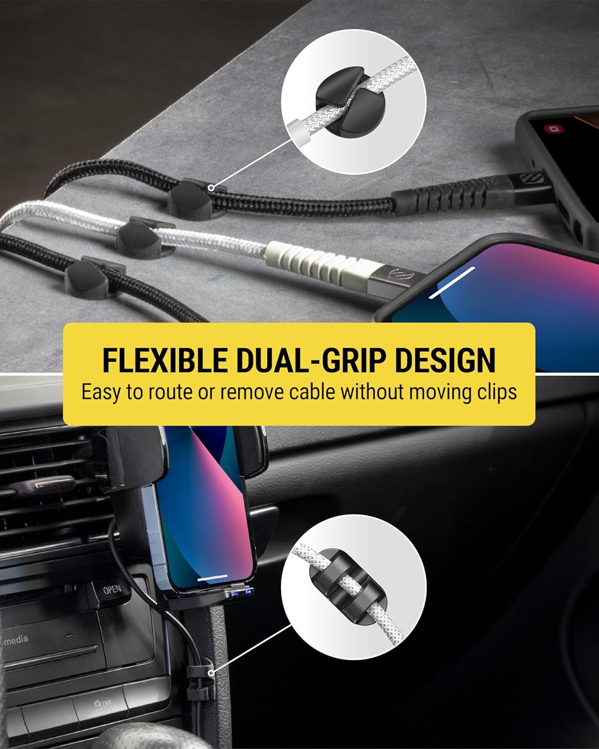- Durable and Reliable: The two different design styles of these cord management clips ensures a snug fit, keeping your phone charger cable securely in place. No more searching for or dropping cables—make them easily accessible whenever you need them