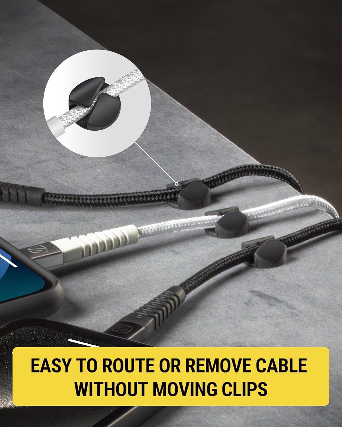 - Durable and Reliable: Keep your phone charger cable secure with these cord management clips. Featuring a flexible dual-grip design, they firmly hold wires in place while allowing easy routing or removal, without moving the clips