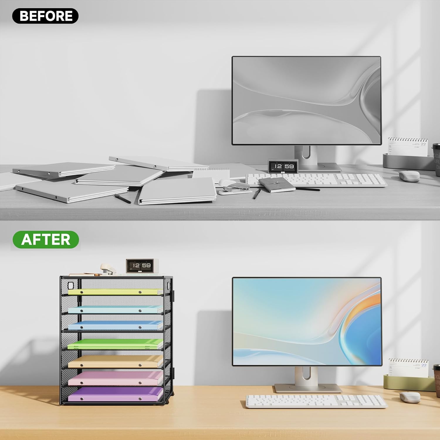 - 【Strong and Sturdy】This desk file organizer is crafted from premium metal mesh. Thickened support rods and a sturdy frame ensure that the desk paper organizer won't warp or break when holding a large volume of paper or letters.
