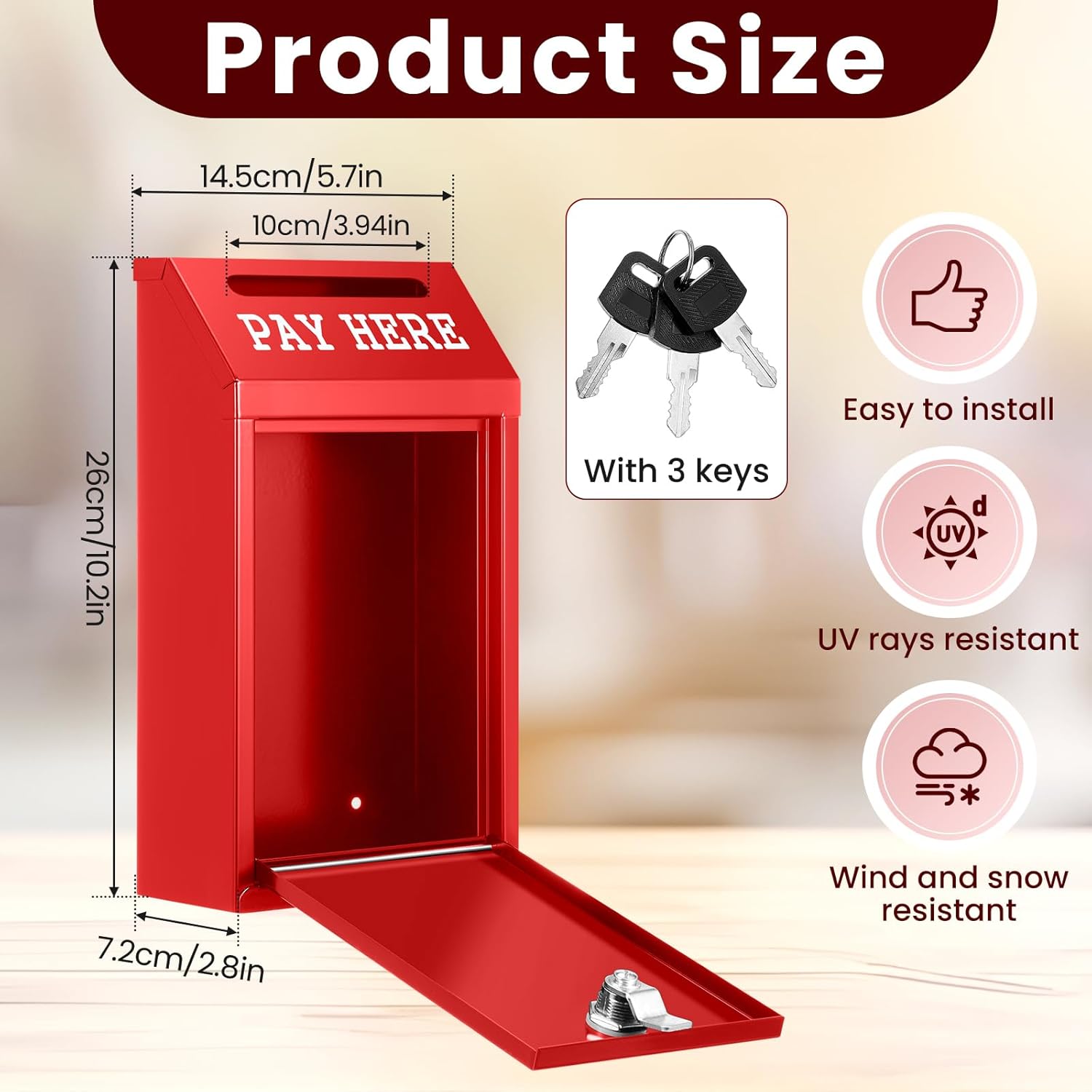 - Wide Application: with clear, rainproof text [Pay Here] printed below the drop hole, our wall safe box can be utilized outdoors in self service stalls, or indoors at shop front desks for storing change and cash among other uses