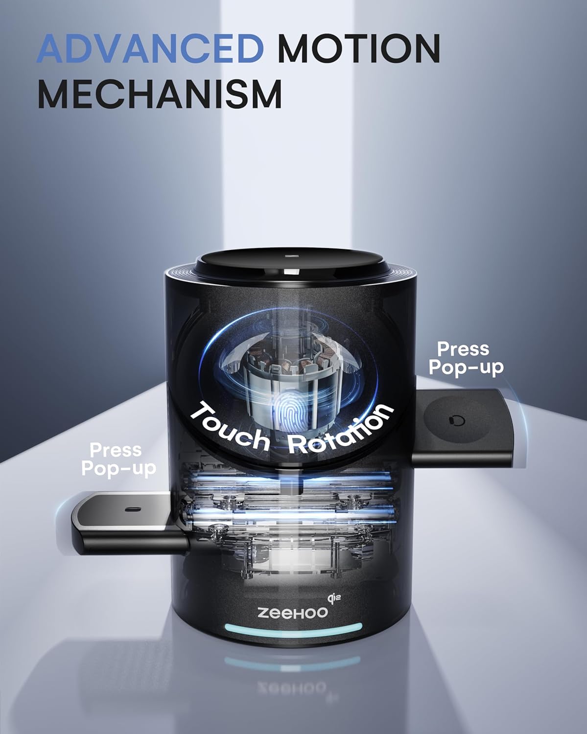- Smart Touch Control: Experience effortless operation with this iPhone charging station featuring instant touch activation, The rotating phone charging area that doubles as a phone stand, allowing for easy viewing while charging. The charging docks for your AirPods and Apple Watch pop up with a press, saving space and keeping your setup organized when not in use.