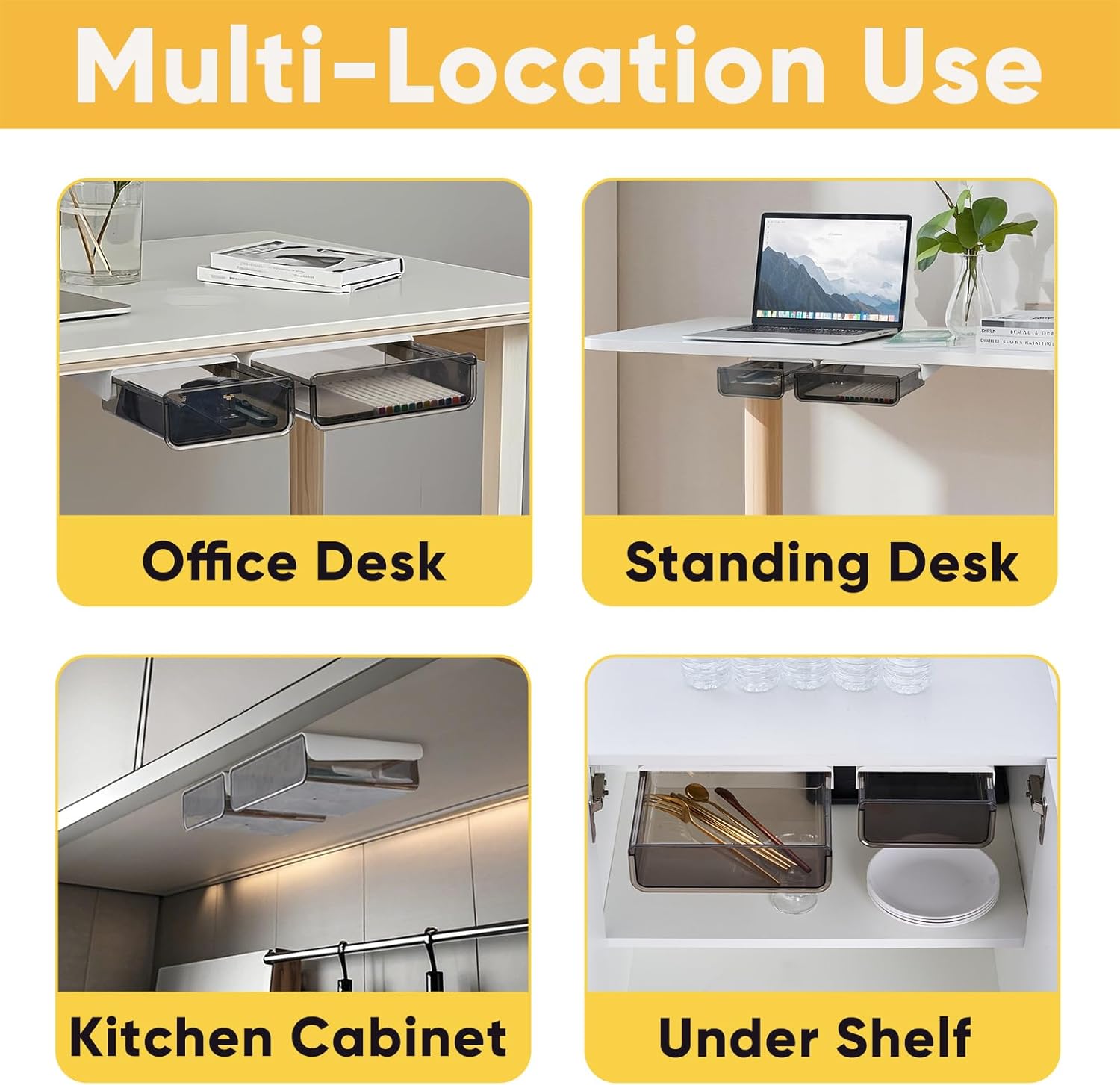 - 【EASY INSTALLATION】This under desk drawer organizer is easy to install with self-adhesive strips and pre-drilled holes for screws. Ideal for under table storage, offering flexible setup without tools or drilling