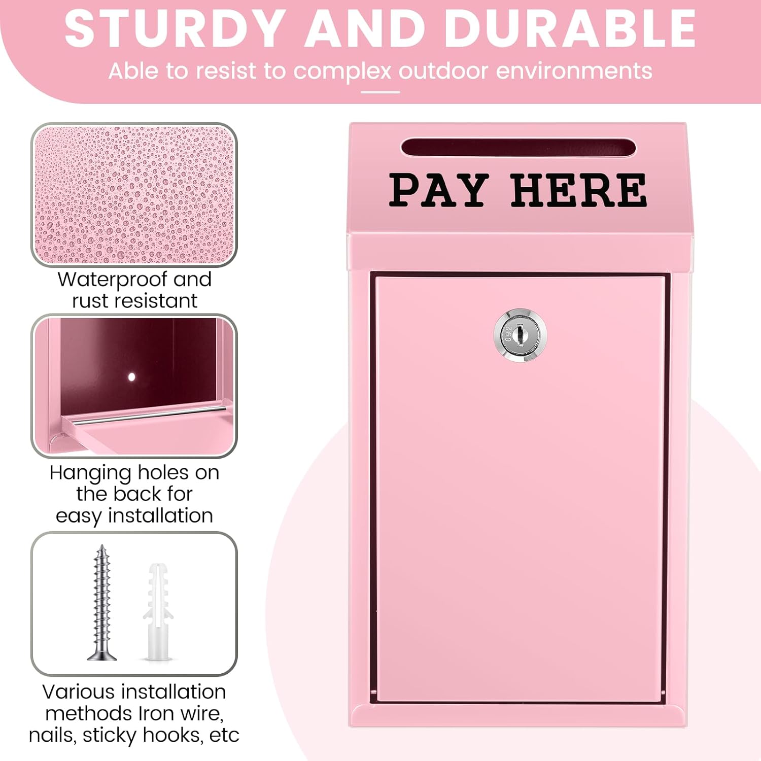 - Wide Application: with clear, rainproof text [Pay Here] printed below the drop hole, our wall safe box can be utilized outdoors in self service stalls, or indoors at shop front desks for storing change and cash among other uses