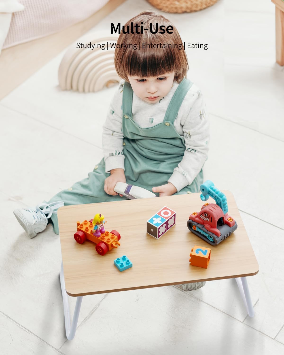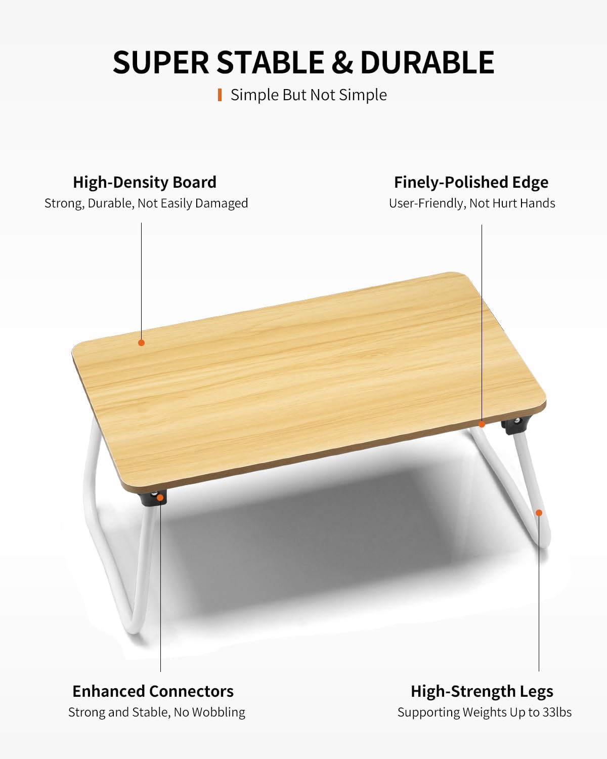 - Lightweight & Portable: Weighing in at just 3 pounds, this bed table/lap table becomes your featherlight companion, ensuring effortless portability on all your journeys. Unfold convenience wherever you are, instantly converting any space into a portable workstation. Meticulously crafted, its desktop size and height are thoughtfully designed, seamlessly accommodating a wide range of activities.