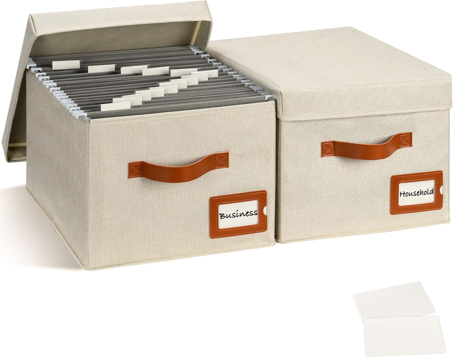 Storage Standard 2-Pack File Organizer Box with Lid - Collapsible Hanging Linen Document Organizer Portable File Boxes, Lightweight & Portable Filing Box Crates with Handles & Extras, Ivory