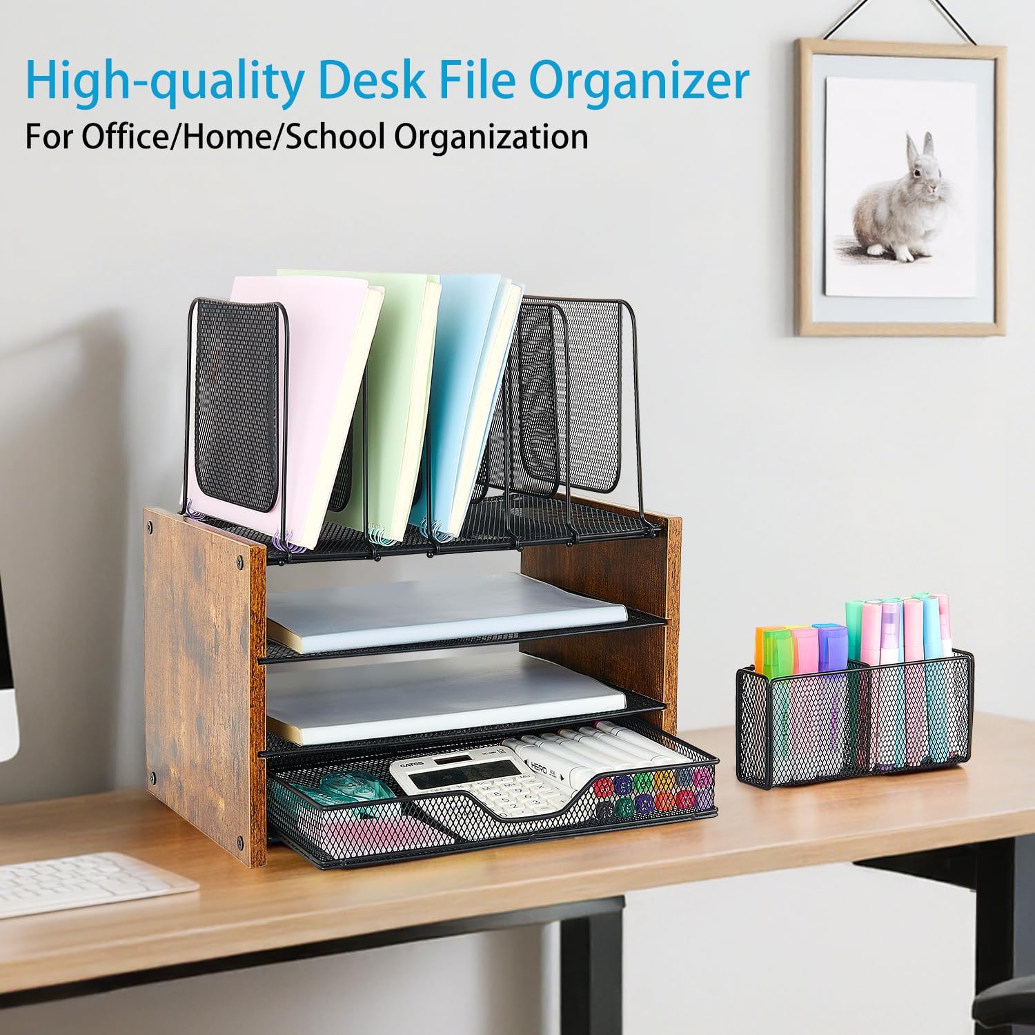 - 【Improve Efficiency】OPNICE desk file organizer stores folders, papers and other items for quick access and easy identification. Easily organize your office supplies and desk accessories to improve efficiency and stay focused