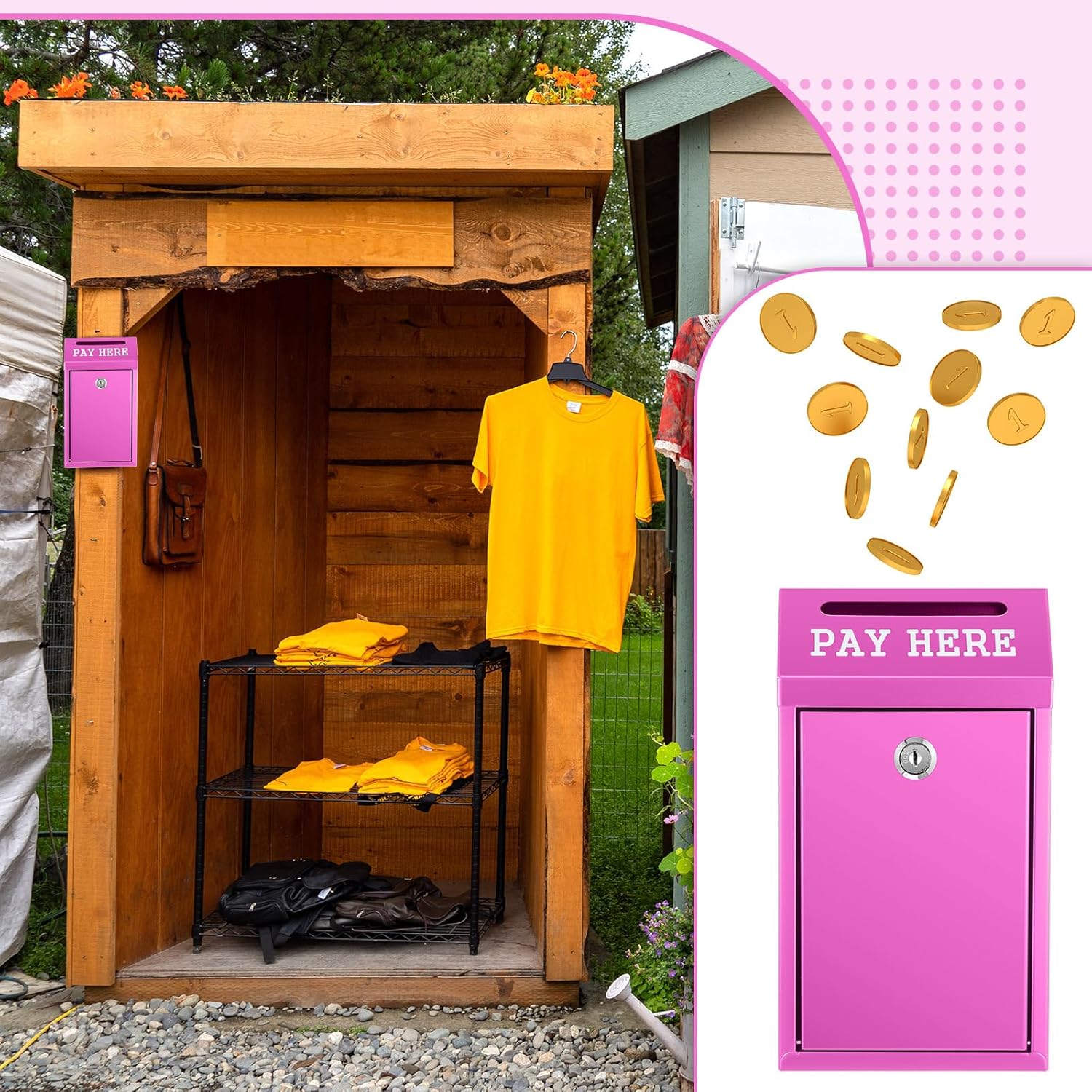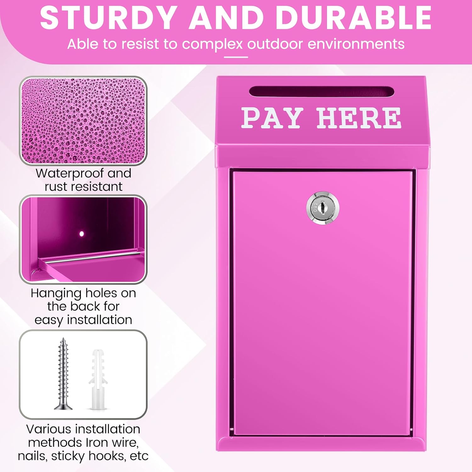 - Wide Application: with clear, rainproof text [Pay Here] printed below the drop hole, our wall safe box can be utilized outdoors in self service stalls, or indoors at shop front desks for storing change and cash among other uses