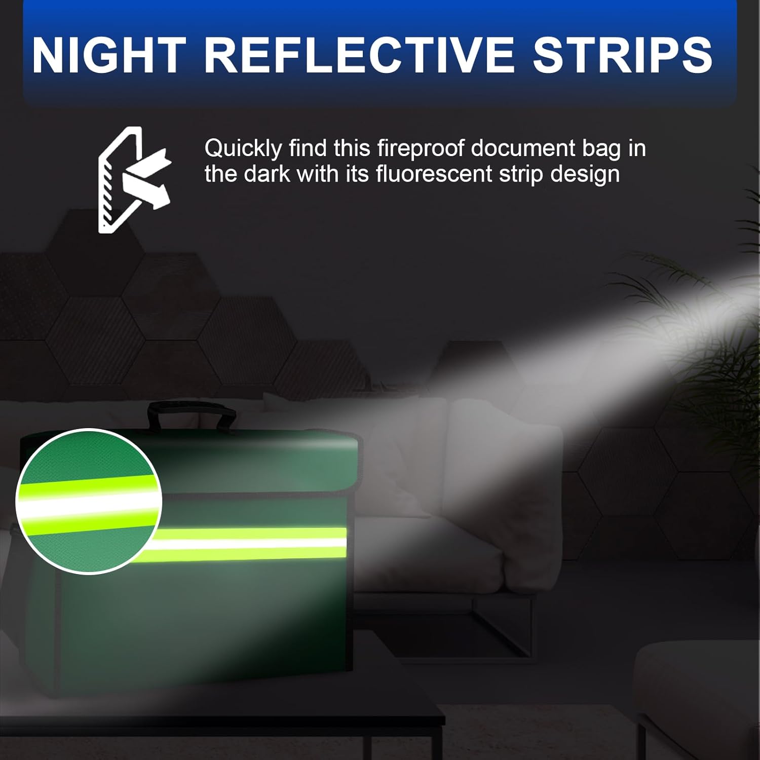 File Organizer Bag with Removable Folder Layers/Wallet,6500°F Fireproof Document Organizer with Lock&Reflective Strip,Portable Home Travel Safe Storage Box for Important Documents(14.1x9.5x4.2 inches)