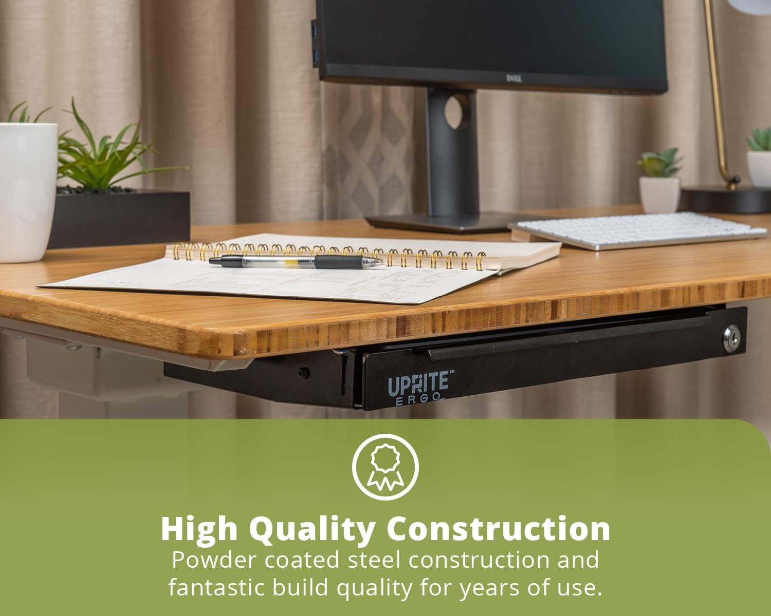 - ENGINEERED FOR SIT-STAND DESKS – The large steel drawer with organizer (19" x 9.5") has a built-in locking system and fits within the crossbar clearance of most height-adjustable desks.