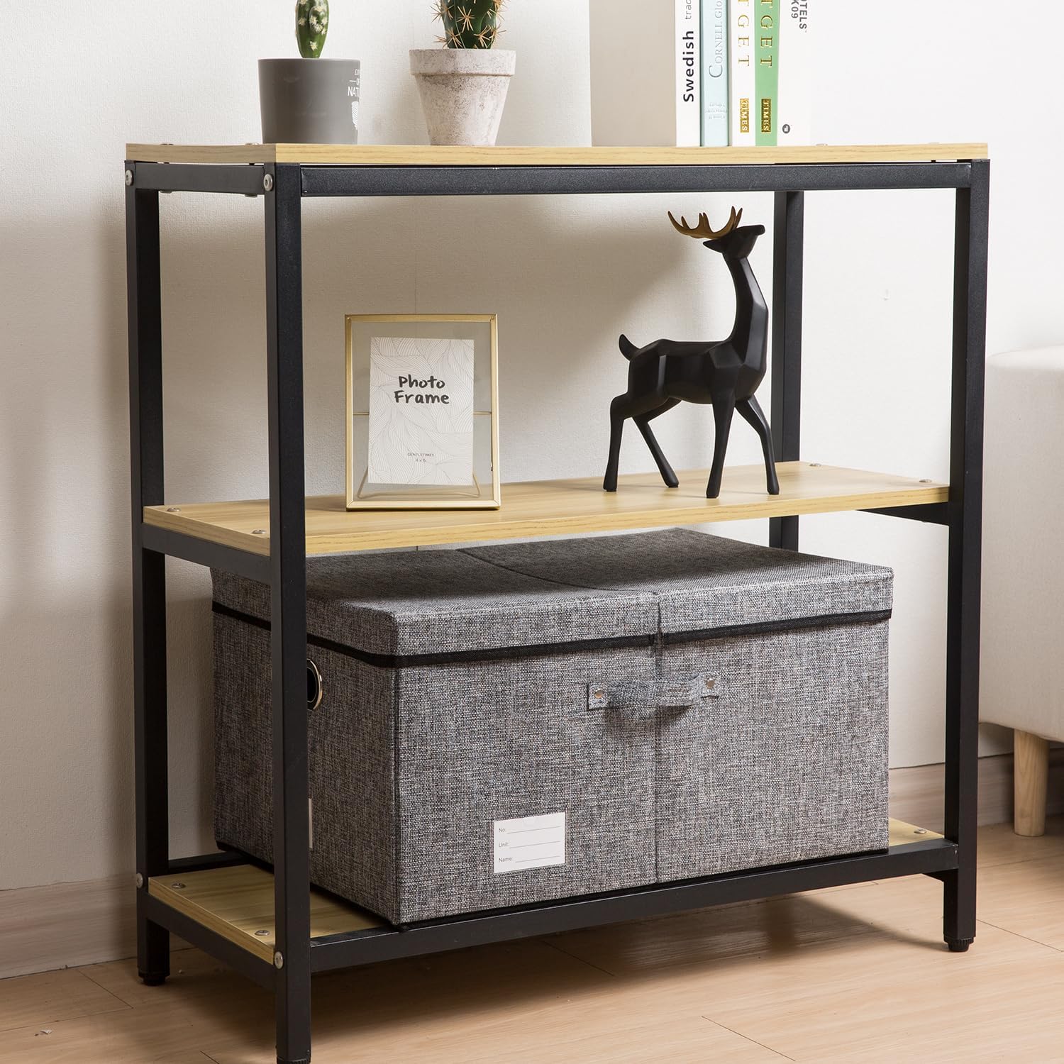 PRANDOM Storage Bins with Lids [3-Pack] Linen Fabric Foldable Storage Boxes Organizer Containers Baskets Cube with Cover (23.4X15.9X11.5) For 6+ Year Old Boys and Girls