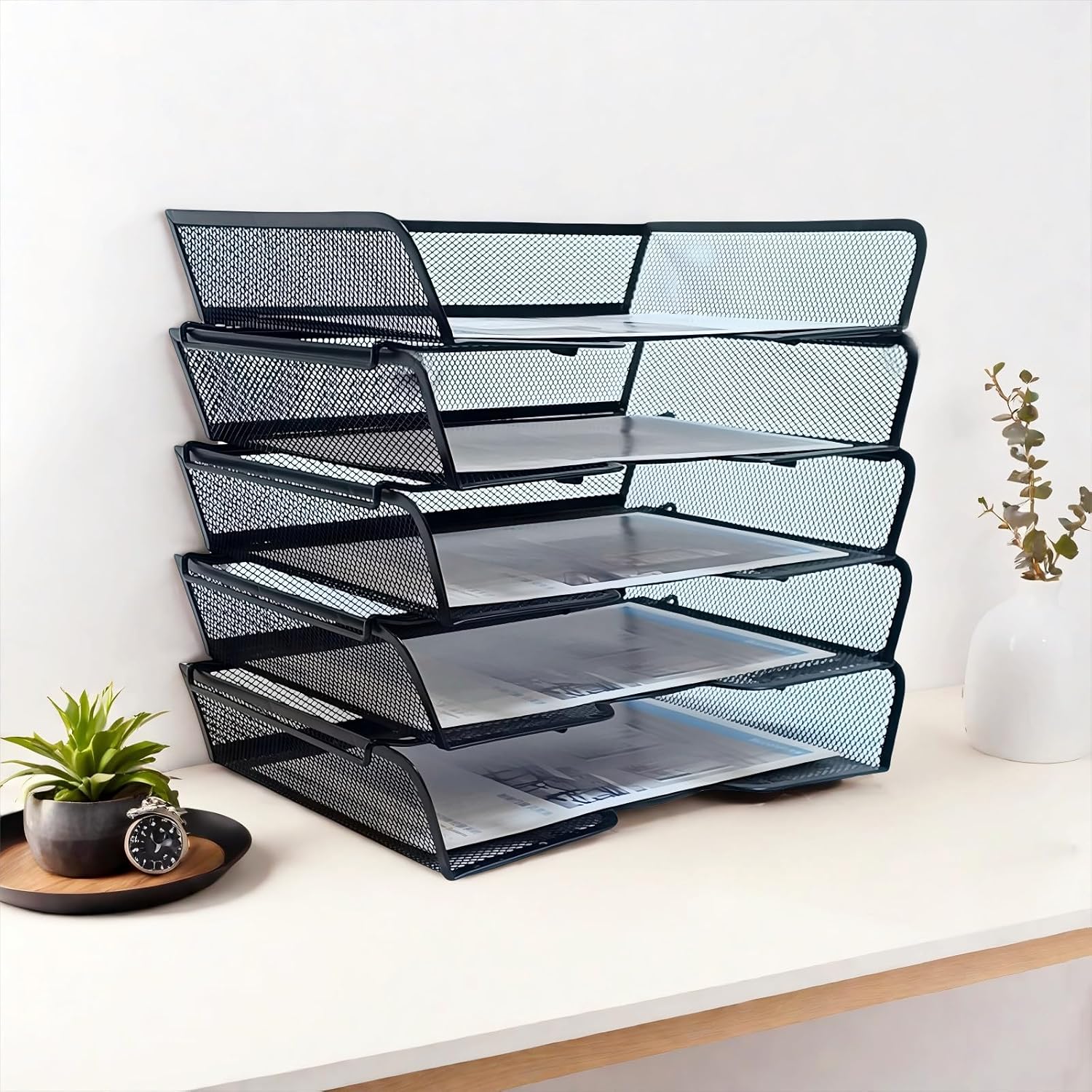 - 【Smart 5-Tier Organization】: Each 14"x10" x 2.7" tray holds A4 or letter-size documents, folders, or binders. The open-grid design lets you quickly spot items, No more frantic desk digging!