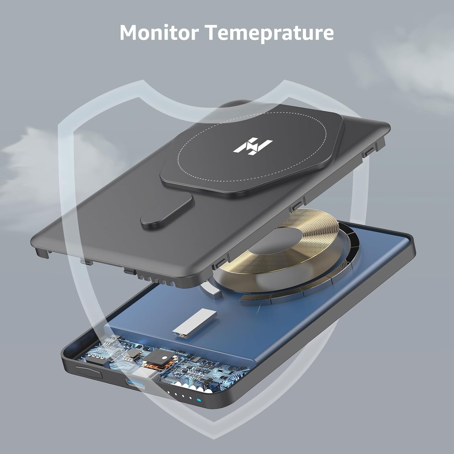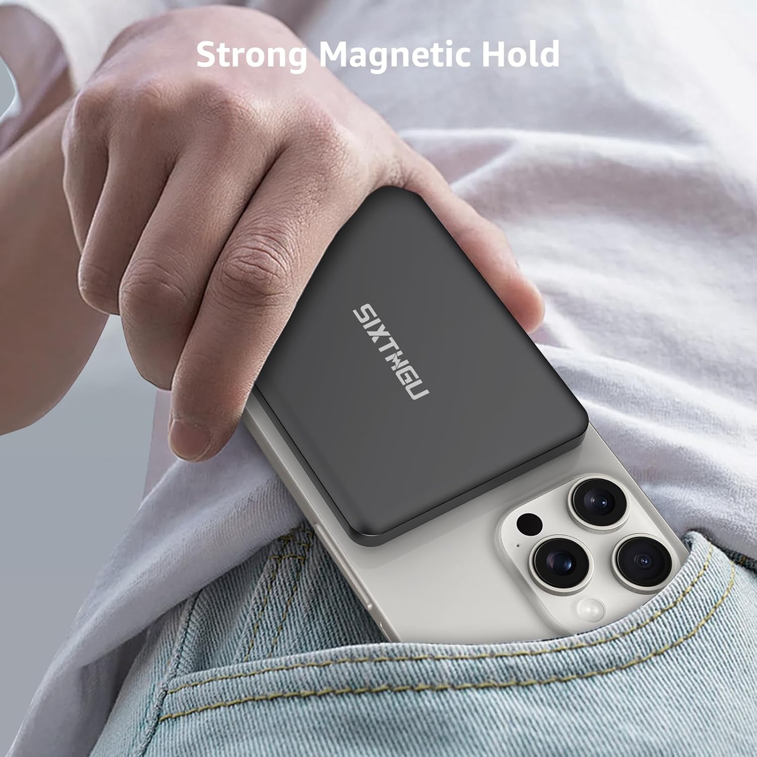 - Ultra-Slim & Feather-Light Portability: Designed for effortless carry, this magnetic power bank boasts an incredibly ultra-thin 0.35-inch (8mm) profile. Its compact form factor slips seamlessly into any pocket or bag, making it the perfect portable power companion.