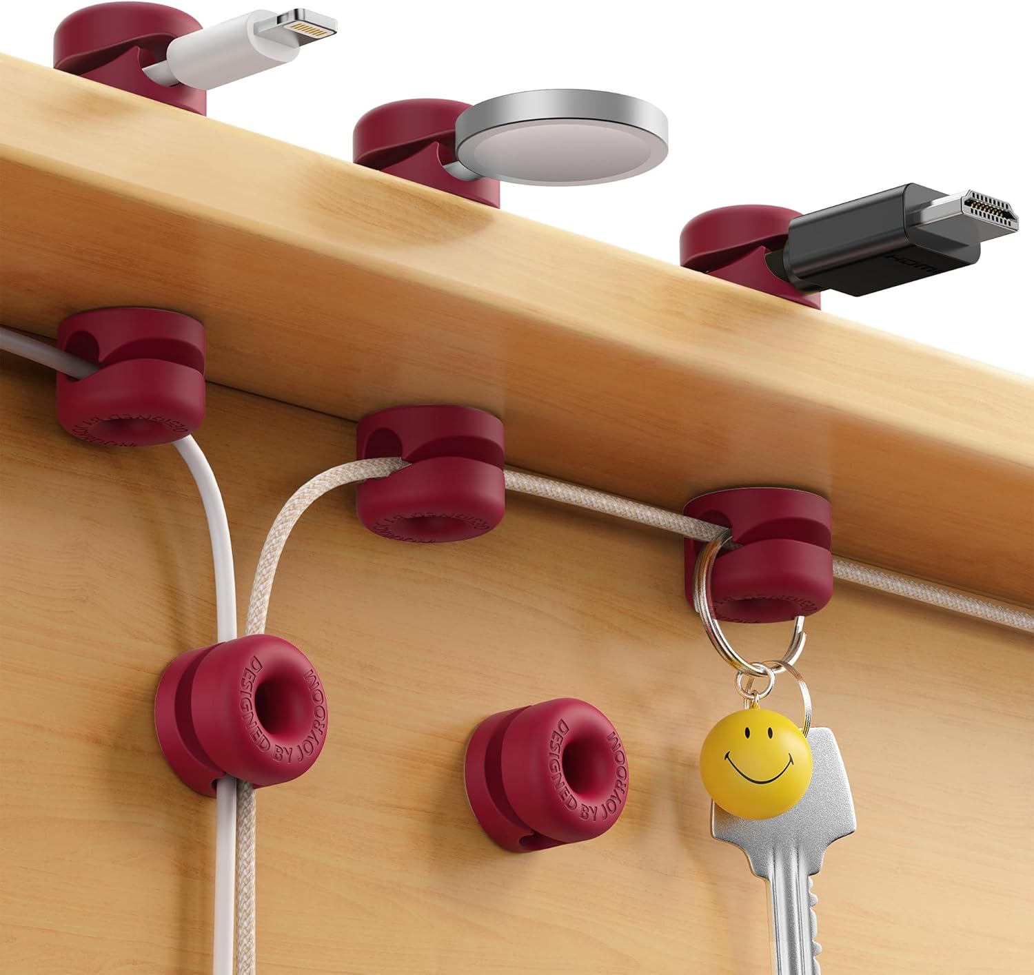 - More Than a Cord Organizer: The unique side-opening loop design cable slot makes JOYROOM wire holder tame your cords and hang your small stuff. Whether managing cable or hanging keys behind the door, or decorating string lights on the wall, JOYROOM wire organizer would defiantly be a must-have home essential