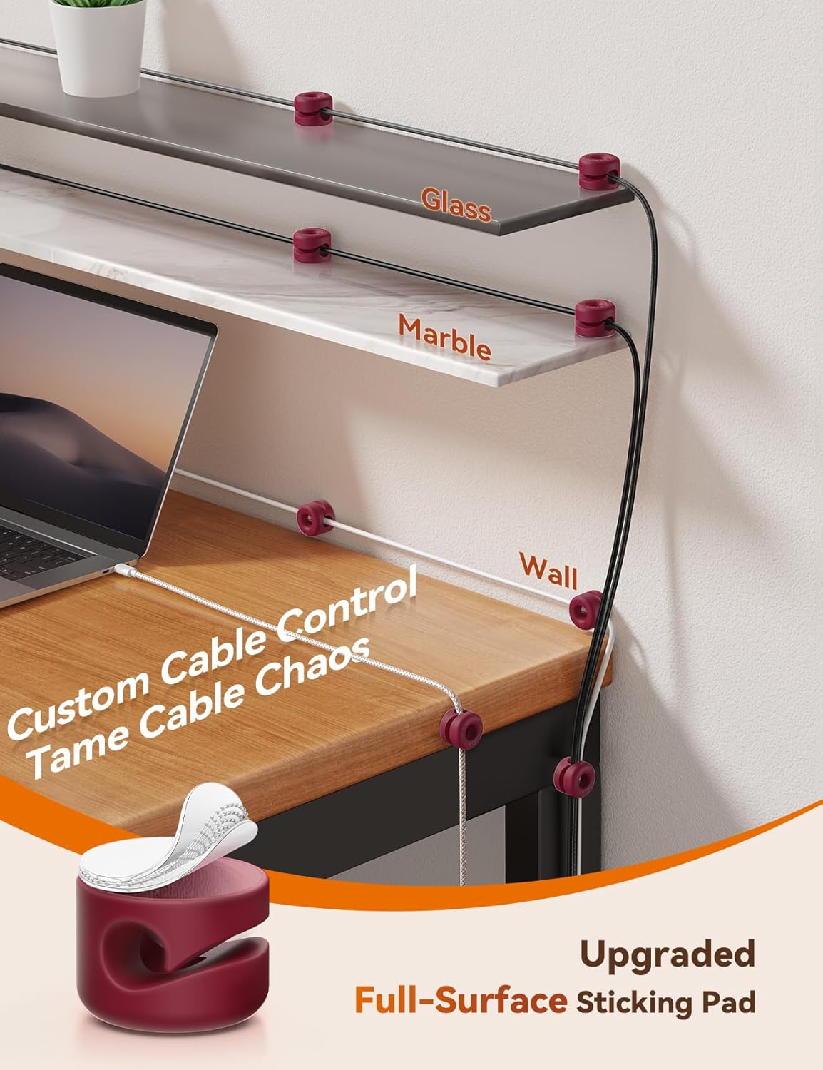 - Reinforced Adhesive Acrylic Pads, Remove Without Leaving Residues: JOYROOM upgraded silicone wire clips boasts a full-flat base with full-coverage acrylic adhesive, securing firmly to wood, glass, wall, etc. Engineered for residue-free relocation: simply peel off the old adhesive pad, replace with the included extra pad(2 provided), and reposition cord clips instantly. (Note: peel off the adhesive backing and affix the adhesive cable clips to a cleaned surface, maintain firm pressure for 30 seconds. For optimal adhesive performance, allow 24 hours before use.)