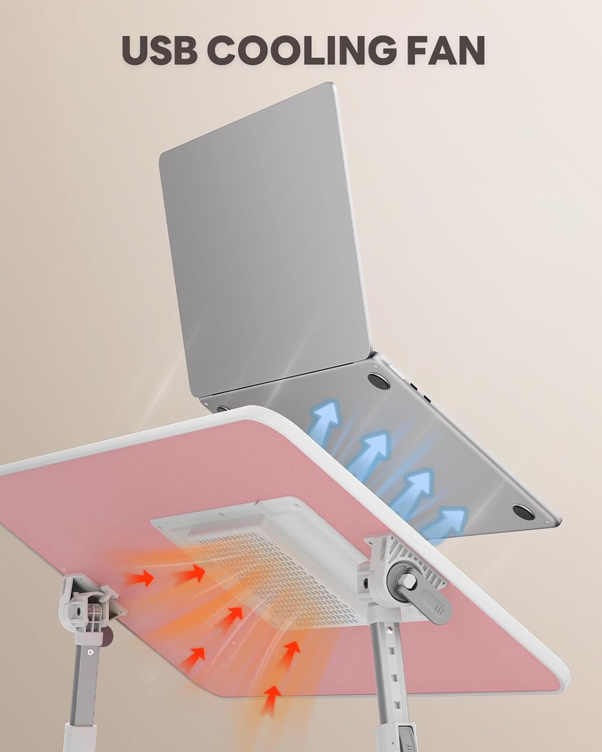 Laptop Desk for Bed with Cooling Fan, SAIJI Height & Angle Adjustable Laptop Stand for Bed, Lap Desk Tray Table, Lightweight Foldable Portable Computer Table